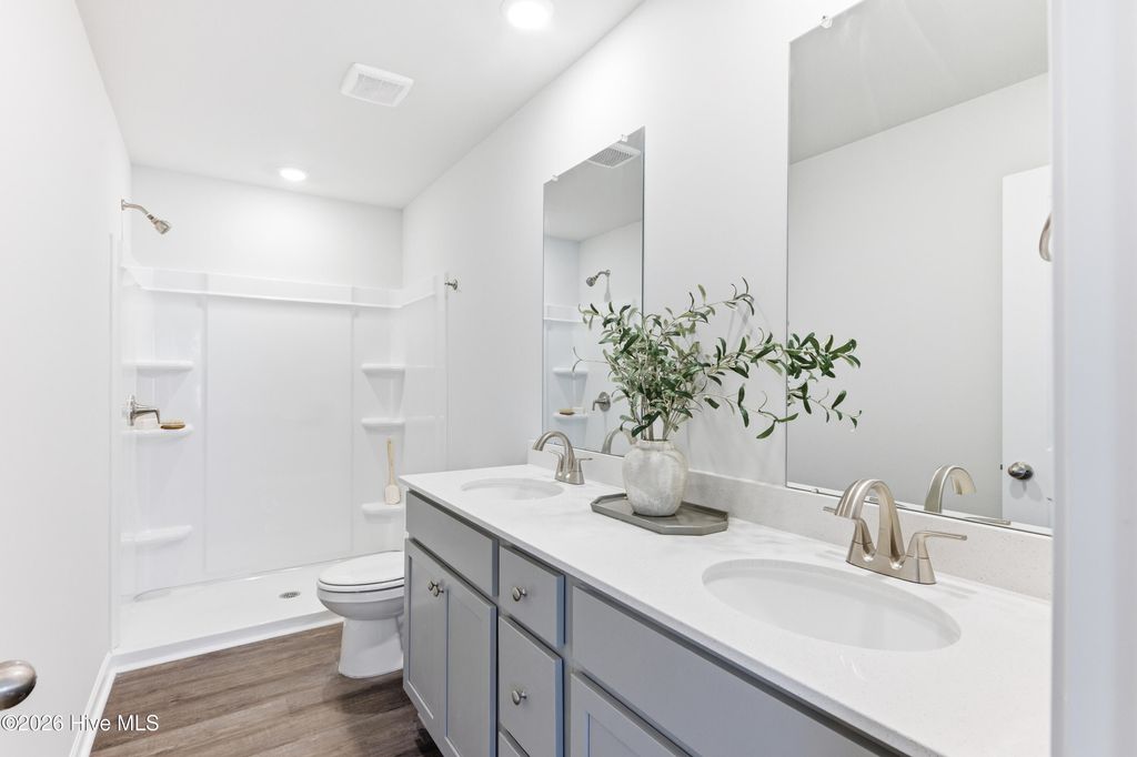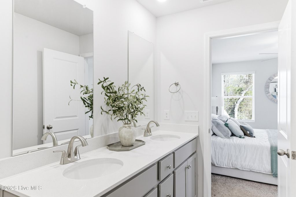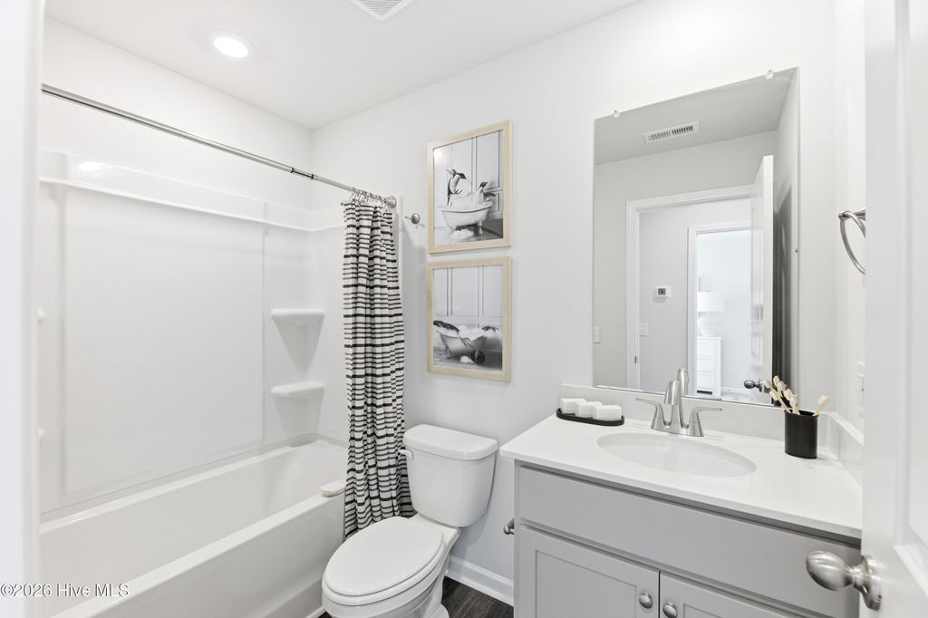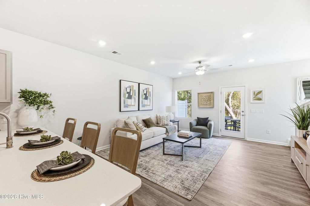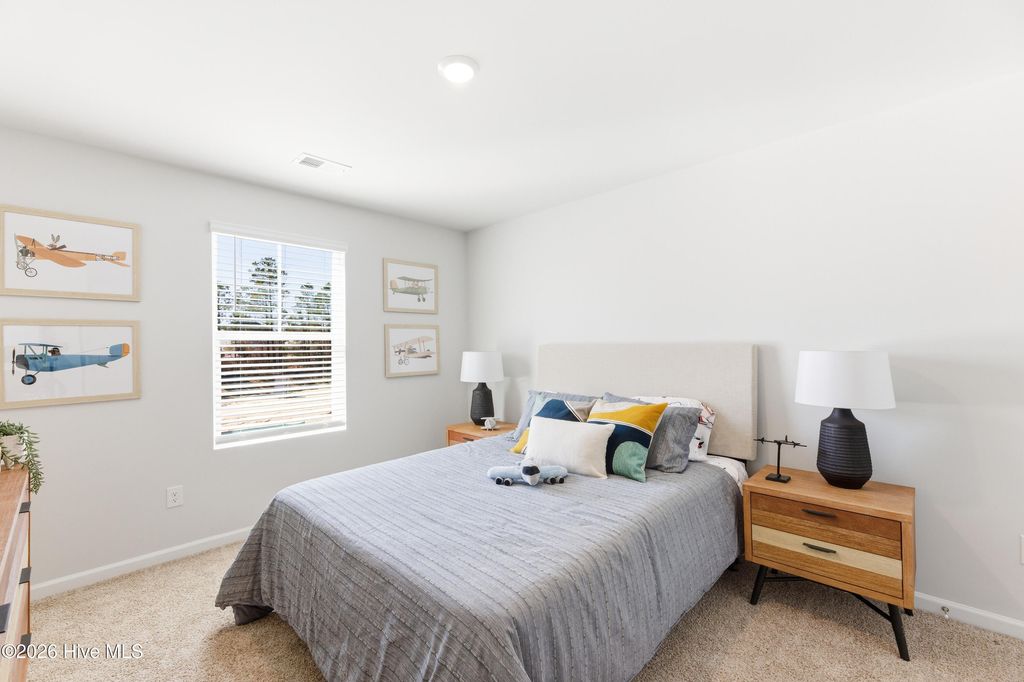 New construction in Jacksonville in Sandy Hollow Townhomes, just minutes from Camp Lejeune, downtown, and shopping! This Crane townhome offers two bedrooms, two-and-a-half baths, a one-car garage, and a full appliance package with refrigerator, washer, dryer, and blinds. The open first floor features a kitchen with quartz countertops, soft-close cabinets, and abundant natural light flowing into the family and dining areas plus a convenient half bath and a ceiling fan in the living room. Upstairs, the primary suite has two closets including a walk-in, a walk-in shower, dual vanity, and a ceiling fan, while the second bedroom is bright and spacious with its own full bath, perfect for guests or a home office. Hallway closets and a laundry closet near the primary suite add extra convenience. Lawn care and trash are included in HOA costs. For added peace of mind, this home includes a one-year builder's warranty, six-year structural warranty, and one-year termite bond. Modern design, functionality, and low-maintenance living make this home a must-see. Rate and closing cost incentives are available through our lender, so contact the listing agent for details. Photos are of a similar home while this one is under construction.