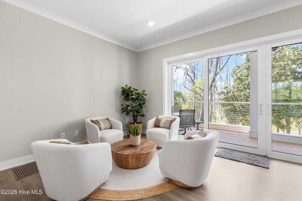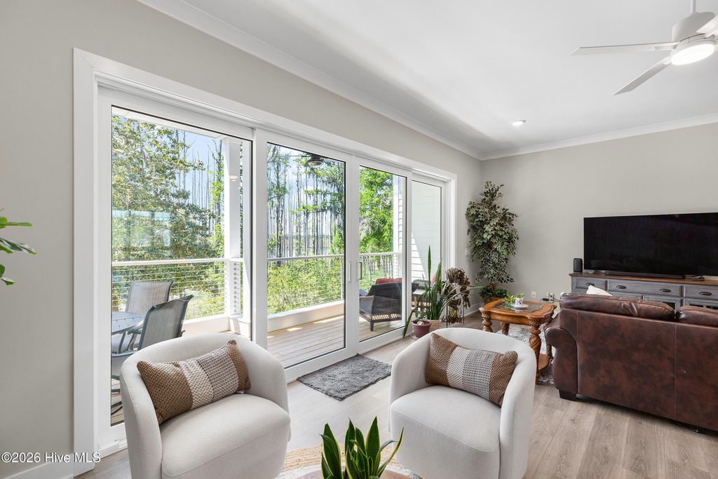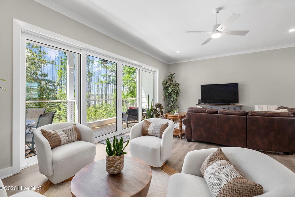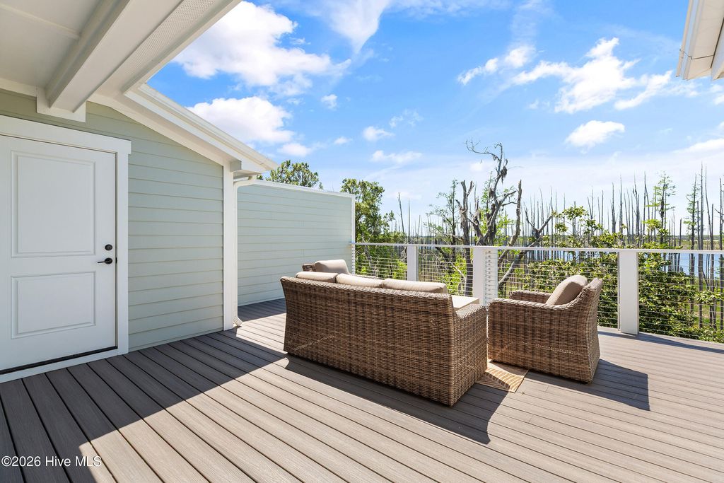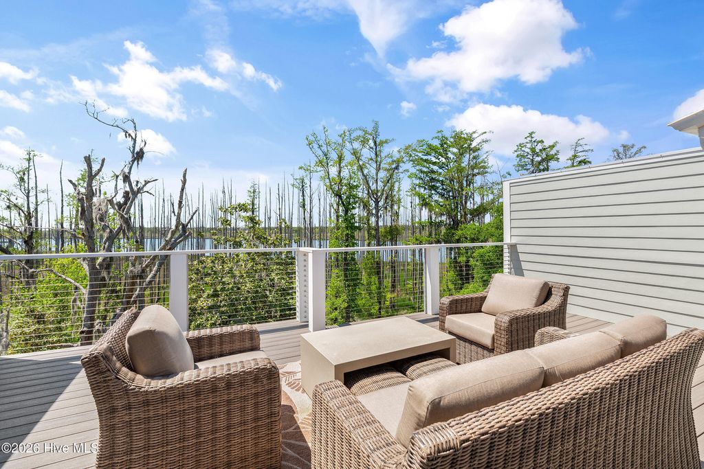 Exceptional best defines this luxurious townhome in Sunset Reach, one of the area's most sought-after water access communities. This quality-constructed, stunning 4-level home with an elevator offers modern elegance and ease of living. You will be captivated by the attention to quality detail that sets it apart. Architectural accents, including an inviting covered front porch, accentuate the home's curb appeal, while plank flooring and custom millwork run throughout the interior. The second floor serves as the central hub of the townhome with its main living area. The kitchen boasts high-quality stainless appliances - including a gas stove - quartz countertops with complimenting backsplash, white custom cabinetry, a pantry, and a center island with bar seating. The adjacent dining area is perfect for intimate occasions, while the living room is ideal for gatherings. A private home office is also nearby. The third level includes the primary bedroom suite, a true statement of luxury. The spacious bedroom features a tray ceiling; the bathroom boasts a double vanity, stylish fixtures, large walk-in closet, & tiled shower with glass doors. Positioned opposite the primary suite, two bedrooms are equally well-appointed and share the landing bathroom. The first floor incorporates guest quarters with an additional large bedroom and an attached bathroom comprised of an attractive vanity, tiled shower, and walk-in closet. A highlight of the home, each floor enjoys a covered porch with sweeping views of the river - evening sunsets are captivating with the brilliant sky displays. The 4th level offers a theater room, half bathroom, attic storage, and an expansive private balcony, also with stunning views of the river; the balcony includes a gas connection for a grill and an exterior storage closet. Additional features include an expanded garage, laundry room, gated entrance, river gazebo, day dock, pickleball, & recreation area. Boat slips (35' & 40') are available to purchase.