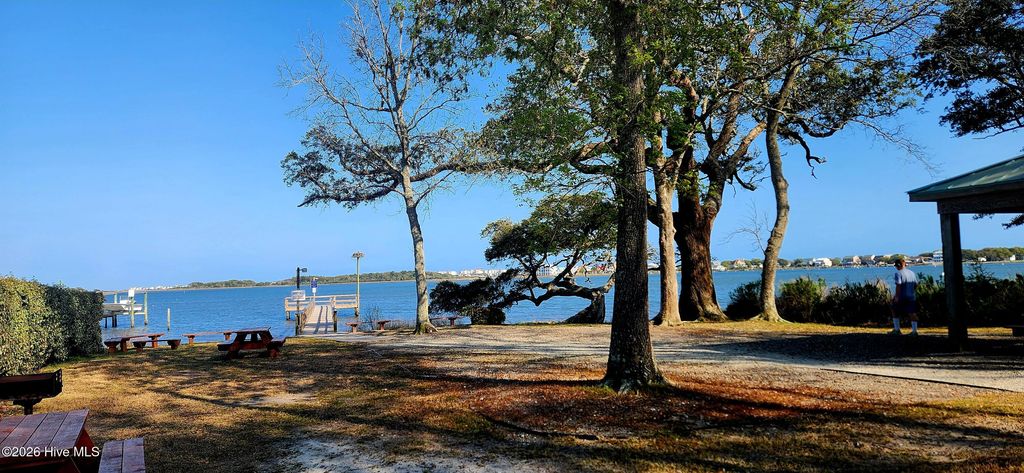 Build your coastal dream home in the sought-after Chadwick Shores community in Sneads Ferry! Water views and community access nestled inside this established, gated waterfront neighborhood. You will find a community fishing pier, boat dock, picnic areas, covered gazebos, and grills for gathering and entertaining at the Waterfront Park. Launch your kayak, paddleboard or just watch the seabirds and embrace the coastal lifestyle while you wade in the water or let your dog swim! Thoughtfully maintained playground, outdoor fitness and sports areas on separate parcel nearby. Streetlights, dog stations and private roads maintained. Walk, bike or golf cart along the neighborhood's waterway peninsula setting to your new home with partial water views from just inside the private cul-de-sac. Convenient to Topsail Beaches, Camp Lejeune/Jacksonville, Stone Bay, Wilmington, shopping and restaurants, this level lot is currently flagged and has elevation marked on lot. Your vision awaits with a completed Soil Evaluation for a 4 bedroom home with ability to have additional water views from the second story. This prime lot offers the perfect opportunity to design and build exactly what you've been envisioning--whether it's a full-time residence or a coastal retreat