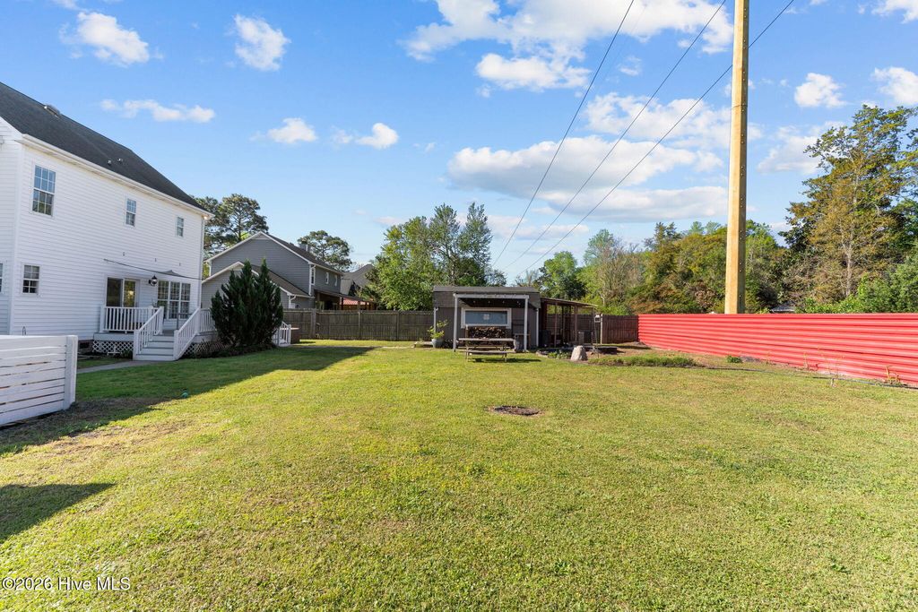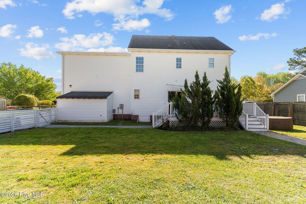 Discover your dream home in this beautifully 4-bedroom, 2.5-bath residence nestled in a prime location near the beach. This coastal gem offers the perfect blend of modern comfort and coastal living, all without the hassle of an HOA. Step onto the inviting front porch, where you'll be greeted by the charming curb appeal of this beautiful colonial-style home. Built in 1995 and meticulously renovated in 2017, this move-in-ready home boasts a host of updated features, including a new roof, HVAC system, plumbing throughout, flooring, bathrooms, windows, kitchen, deck, and a dehumidification system in the encapsulated crawl space. The spacious family room serves as a comfortable gathering space, perfect for entertaining. The formal dining room provides a cozy setting for family dinners. The combination kitchen area overlooks the expansive back deck and yard, complete with an oversized shed for all your gardening needs. Ample parking is available on the driveway, accommodating your large RV or boat. Upstairs, you'll find three additional bedrooms, each offering ample space for your children or guests. The large primary bedroom features dual walk-in closets, a tiled shower with a rainfall showerhead, and dual vanities. This coastal gem is an ideal choice for families and active individuals seeking a perfect blend of convenience, style, and space. Don't miss the opportunity to make this beautiful home your own!