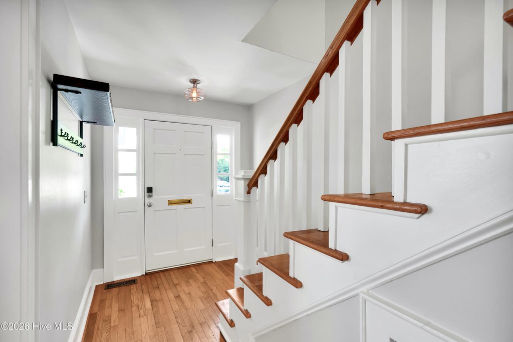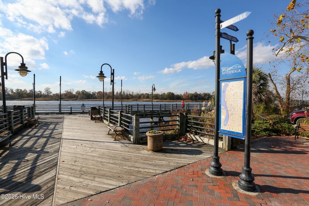 Beautifully updated, low-maintenance home in a highly desirable location--just a short walk to everything downtown Wilmington has to offer. Enjoy views of the Cape Fear Memorial Bridge and Cape Fear River from your own front porch. This home features 2 bedrooms, 2.5 baths, plus a dedicated office space, along with the rare two off-street parking spots. Recent upgrades include a zero-entry tiled shower, new vanity, and a professionally designed kitchen with new cabinetry, stainless steel appliances, and stone countertops. Relax with a glass of sweet tea on the classic rocking chair front porch, while the HOA takes care of the gardens and driveway for easy living.