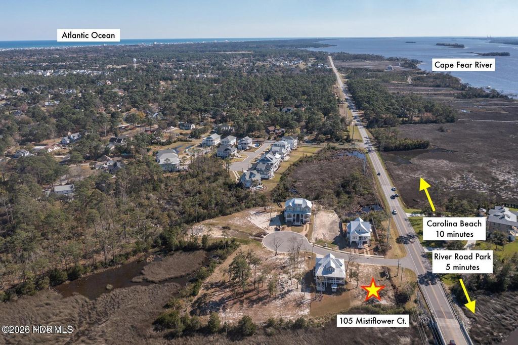 The best views in the neighborhood! Dreaming of living the coastal lifestyle? You can make your dreams come true on this corner homesite, with gorgeous sunsets over the Cape Fear River & serene marsh views across Lord's Creek, where you can launch a kayak right out your back door. A charming boutique cul-de-sac of only 8 lots, Mistiflower Court is tucked just off River Road in Wilmington, 20 minutes from downtown & 10 minutes from Carolina Beach. Imagine building an elevated home that will capture the best views & maximize natural light, with an open-concept living area & a spacious kitchen, dining & gathering space on the top level, flowing seamlessly onto a covered deck out back, perfect to catch coastal breezes & enjoy the views with friends & family. Maybe design the lower level with comfortable guest accommodations, flexible living space & easy access to the outdoors & all it offers. On the ground level, you can enjoy covered parking, storage & space for all your outdoor toys. Whatever you're dreaming of, this could be the place. Convenient to River Road Park & local schools, pickle ball courts & boating opportunities, you'll never want for something to do! Stop dreaming & start living today.