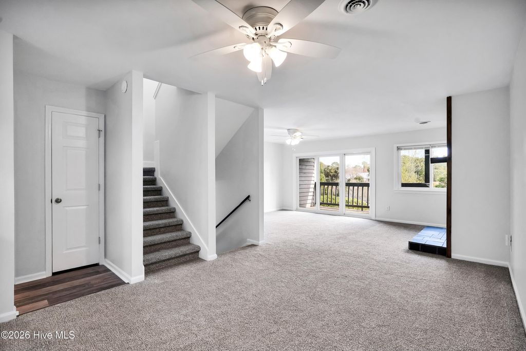 Move-in ready Linksider townhome located in The Cape, offering low-maintenance living with thoughtful updates throughout. This three-story home features a one-car garage plus additional ground-floor storage space not included in the heated square footage--perfect for beach gear, bikes, or seasonal items. The main living level has been beautifully refreshed with new cabinetry, countertops, and flooring, creating a clean, modern feel. This level includes a spacious living and dining area, an updated kitchen, and a convenient laundry space. The living room is highlighted by a cozy wood-burning fireplace, adding warmth and charm. Step outside to enjoy the private deck just off the living room--ideal for relaxing or entertaining. Upstairs, the third floor offers three bedrooms, including one with its own private balcony access. Brand new carpet has been installed throughout this level, adding comfort and style. Additional recent improvements include all-new windows and sliding glass doors, enhancing energy efficiency and natural light. Enjoy easy living in a well-maintained community that also features a swimming pool. This is a turnkey opportunity you don't want to miss!