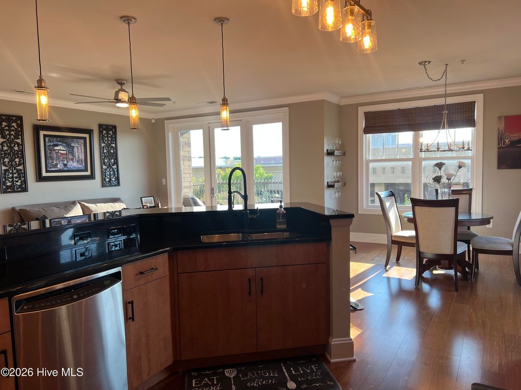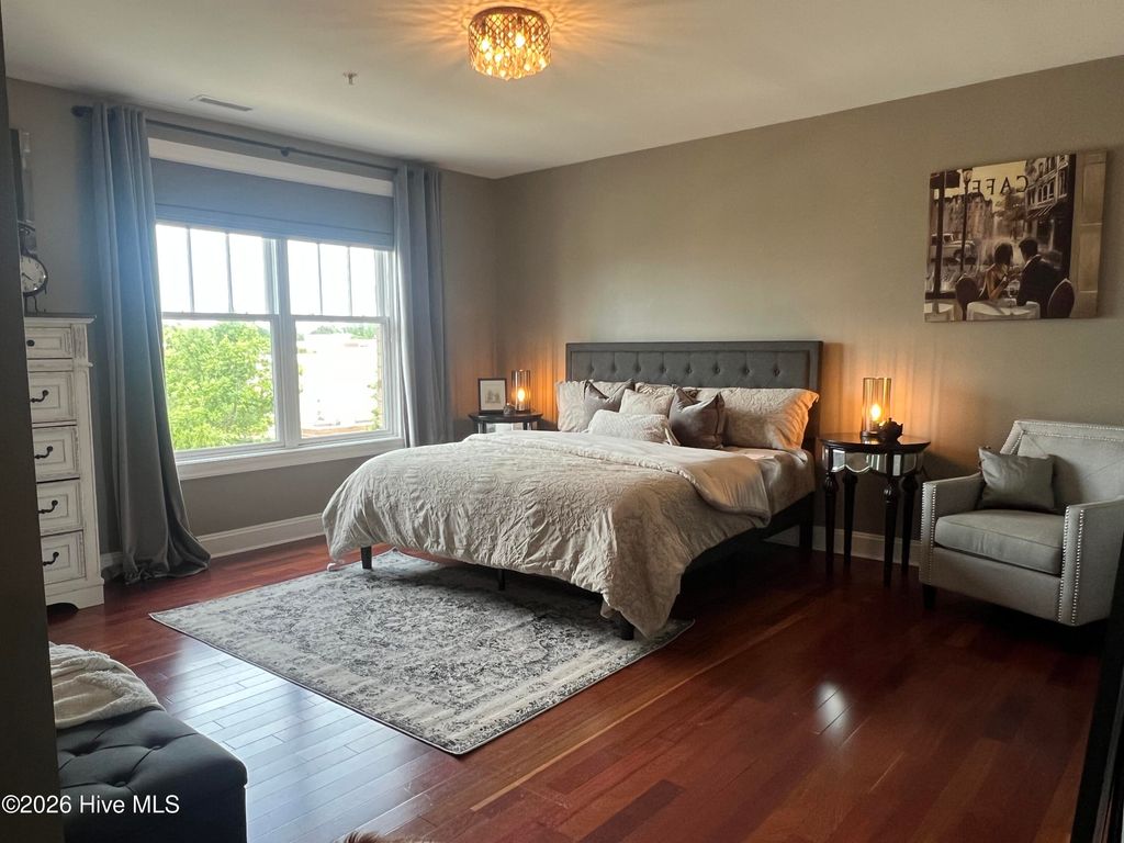 Fully furnished and extensively upgraded, this rare corner residence at Unit 212 in Mayfaire Townview offers a turnkey opportunity in Wilmington's destination. Perched above the vibrant shops and restaurants of Mayfaire Town Center, this home blends convenience with refined coastal living and is completely move-in ready--simply bring your suitcase. With no direct neighboring windows and a desirable west-facing orientation, the unit is filled with natural light and offers exceptional privacy, an uncommon feature in this community. The spacious layout lives like a single-family home, offering an open, airy feel ideal for both everyday living and entertaining, while a private balcony provides the perfect setting to enjoy sunset views and the ambient energy of Mayfaire below. Inside, every detail has been thoughtfully upgraded, including designer bathrooms with heated floors, heated towel racks, and custom tile, hardwood floors and tall ceilings throughout, upgraded lighting fixtures, custom barn doors, and smart storage solutions. The fully equipped kitchen features a Nespresso machine, wine fridge, and statement wine wall, while modern conveniences include motorized blinds, a smart thermostat, voice and app-controlled features, keyless entry, and a Ring doorbell. Professionally curated furnishings, linens, and décor are all included, creating a seamless, high-end living experience. Located in the heart of Mayfaire, residents enjoy immediate access to restaurants, coffee shops, boutique shopping, fitness studios, a movie theater, and more, along with nearby bike paths extending to Wrightsville Beach. Building amenities include a private fitness center, indoor bike storage, theater room, and a dedicated billiards lounge with a pool table and foosball, offering both convenience and entertainment just steps from your door. This is a rare opportunity to own a fully furnished, upgraded corner unit in one of Wilmington's most desirable communities.