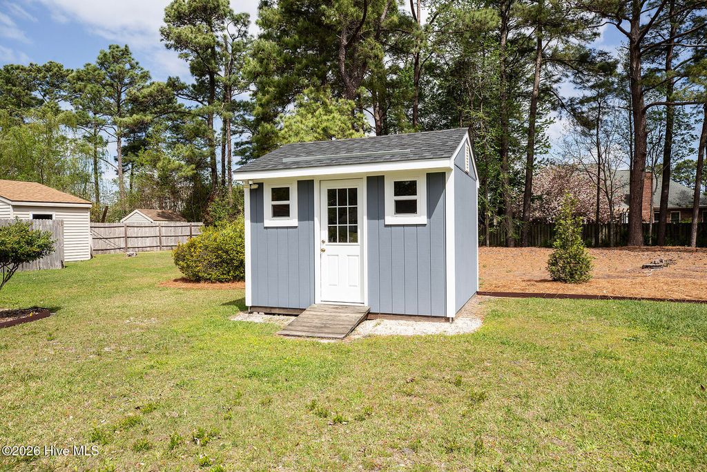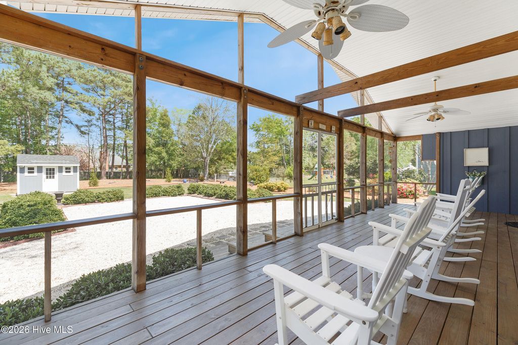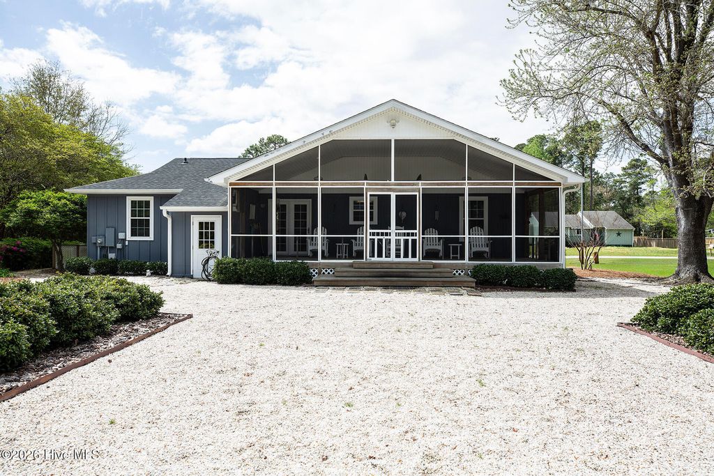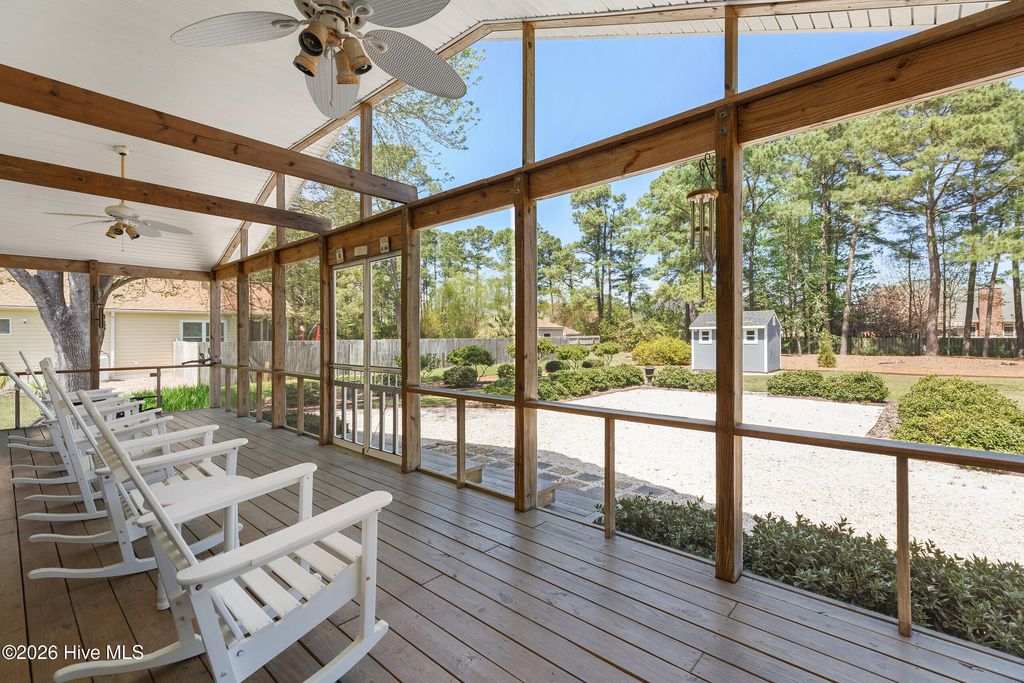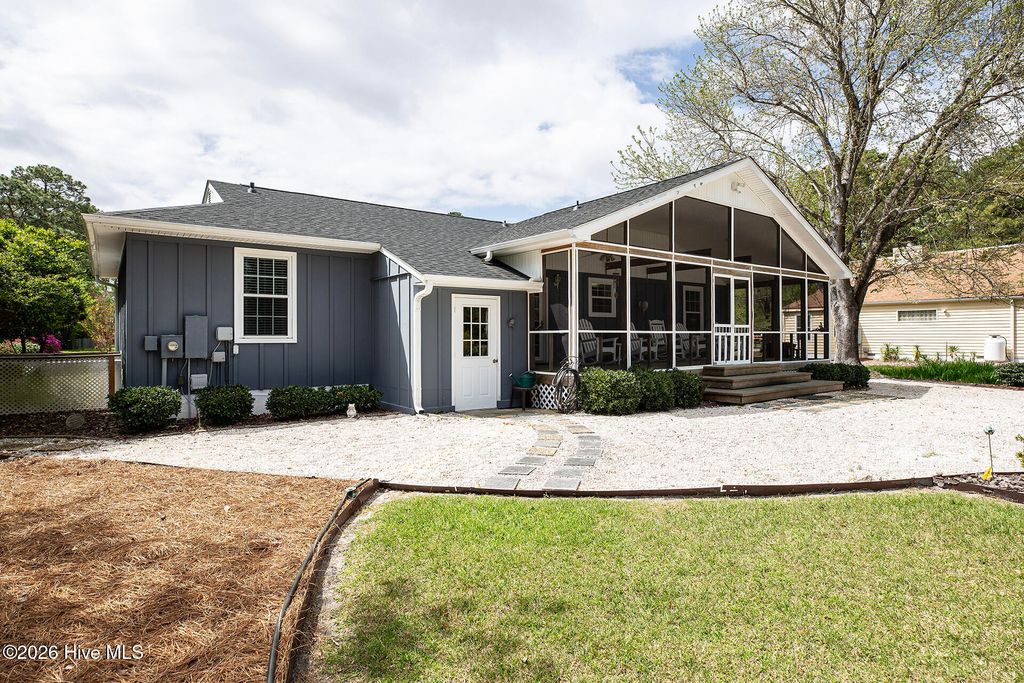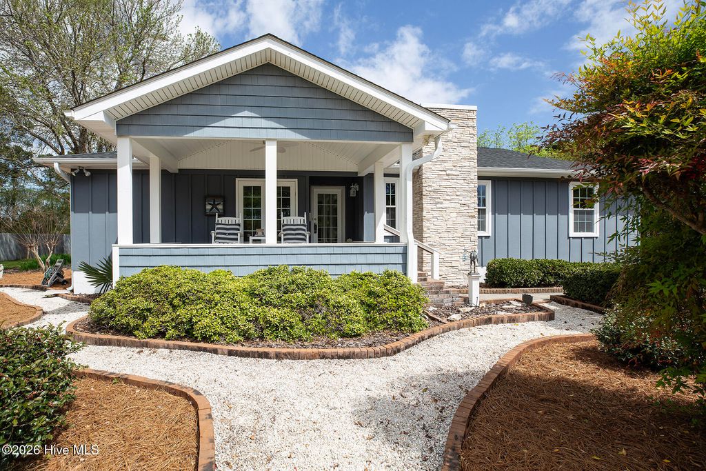 This attractive one level home is in one of Wilmington's most sought-after neighborhoods - Hidden Valley - located near Midtown and Monkey Junction. Less restrictive, the community does not have a homeowner's association. The curb appeal is superb, enhanced by a brick paver driveway, exceptional landscaping, and a covered rocking chair front porch. The impressive interior incorporates a semi-open designed floorplan - accentuated by plank flooring, a cheerful color palette, extensive millwork and built-ins. The kitchen boasts ample countertops, white custom cabinetry, and a dining area. The spacious primary suite is a retreat of its own; it also has plank flooring and a large walk-in closet. It is adjoined to its primary bathroom, comprised of an attractive vanity, and combination tub/ shower. The two additional downstairs bedrooms are equally well-appointed, have generous closet space and share the hall bathroom. One of these bedrooms has built-ins and is currently being utilized as an efficient home office. One of the prominent features of this move-in ready home is the spacious screened porch overlooking the large backyard - an oasis of flowering trees and nature. Other important features of this home include a sitting room, newer roof (2025), attached storage room as well as a matching storage shed, cost-effective irrigation well and abundant parking. Shopping and a wide array of dining options are nearby, and Carolina Beach is a short 10-minute drive away. Welcome home!