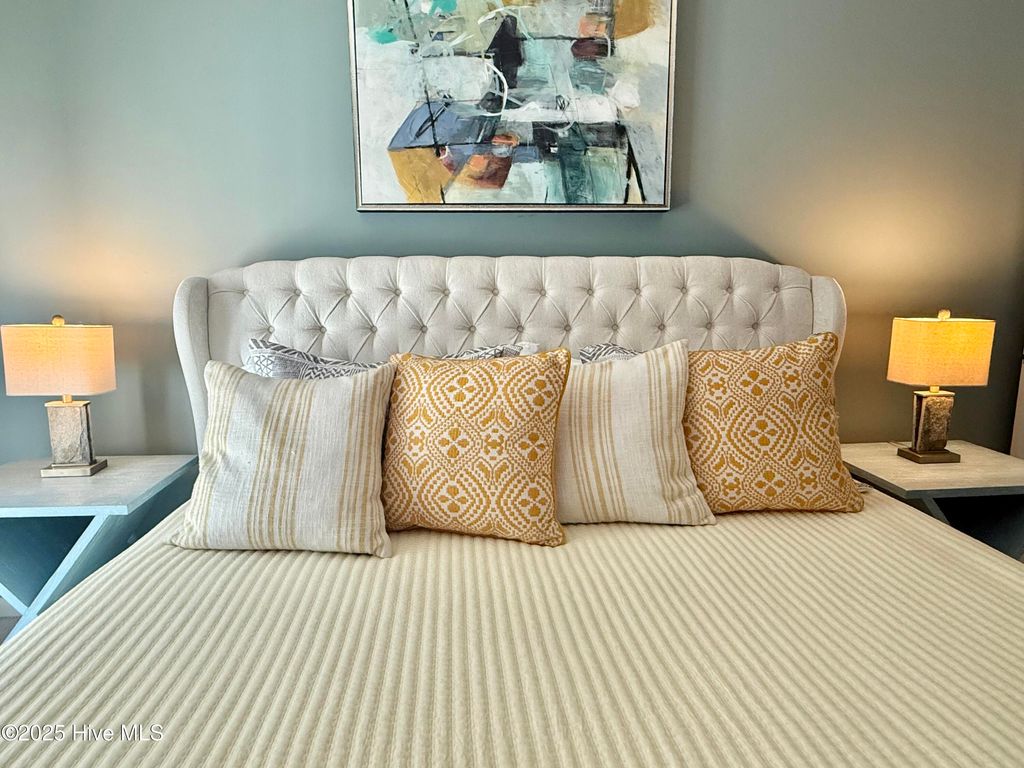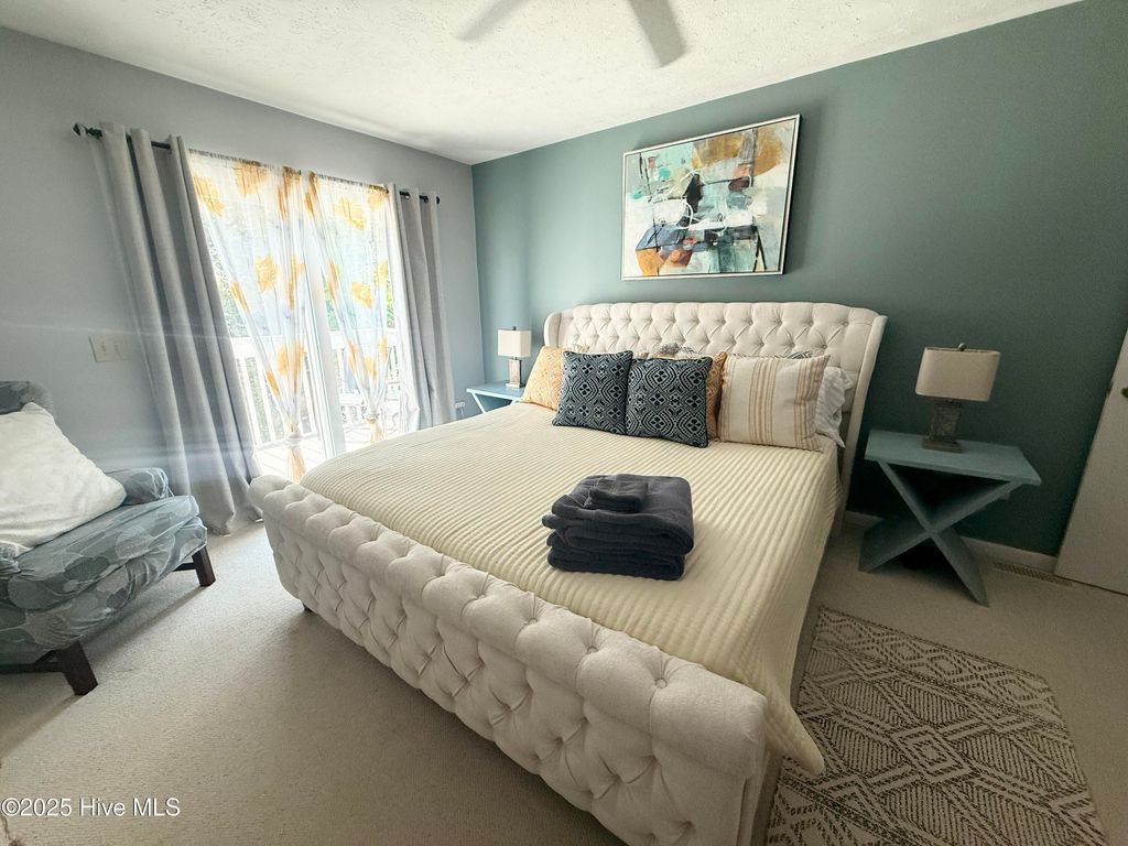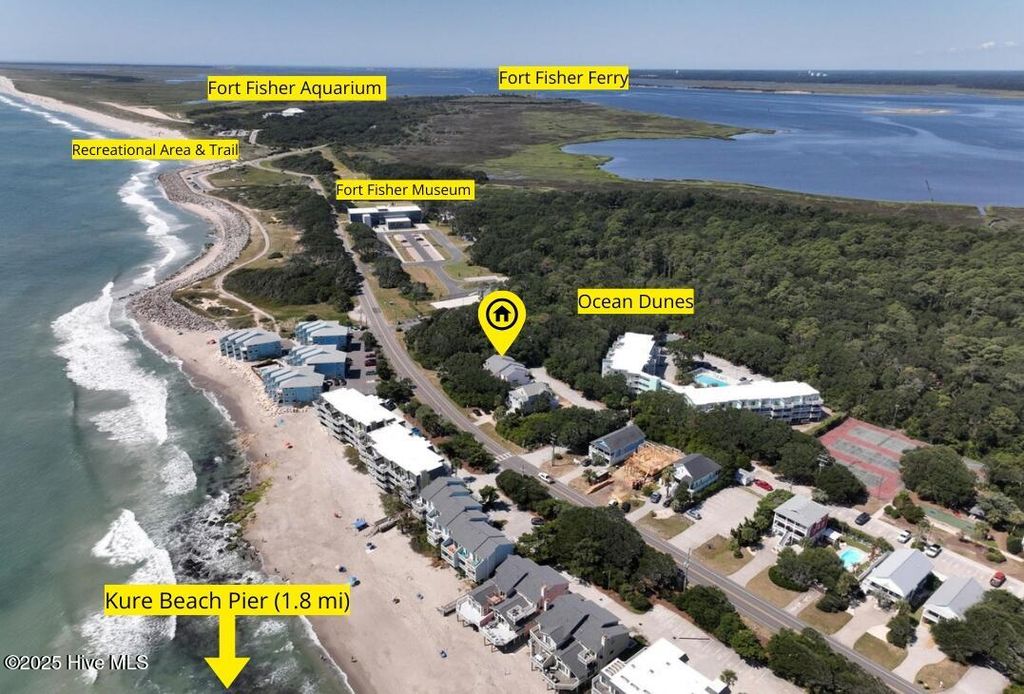 Gorgeous seaside turn key townhouse style END UNIT nestled in the trees across the street from the beach with tons of privacy! Fully furnished, 2 bd 3 bath spacious unit for long term use or short term rental! Ocean sounds and peeks through the trees from the upper master bedroom and lower level porches. There is a large bay window and two sliding doors in the main living area for tons of natural light. New HVAC and water heater in 2024. LVP flooring on main level, new king size bed and bed frame, high end appliances and large capacity stackable washer and dryer. BOAT AND TRAILER can be parked here in the private carport. Enjoy morning coffee listening to the waves & the birds on your very private porch on the quiet side of the island. This unit sleeps 6 comfortably. Ocean Dunes Resort has phenomenal amenities including beach accesses with showers, 3 seasonal outdoor pools, indoor heated pool, hot tub, sauna, gym, playground, tennis courts & more! Carport has two large storage closets. HOA Dues are $1467.88 per month which covers everything except contents: master insurance, flood insurance, water, sewer, trash, cable, internet, landscaping, pest control and all amenities are included!! Walk to to historic Fort Fisher, 1.1 mi. to the Aquarium and 1.8 mi. to KB pier. Note: this is an active rental.
