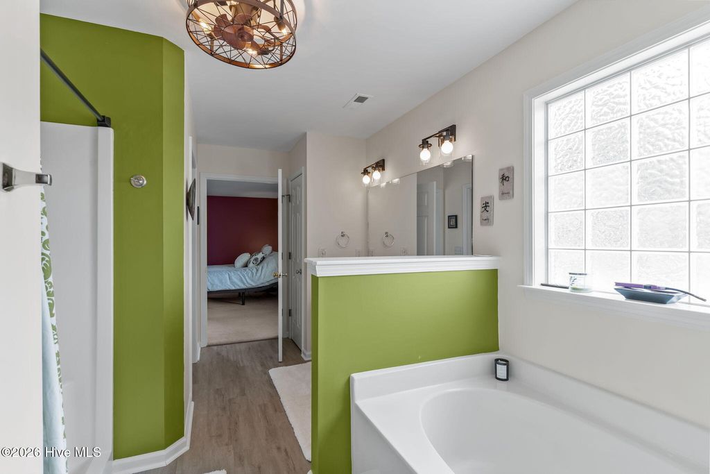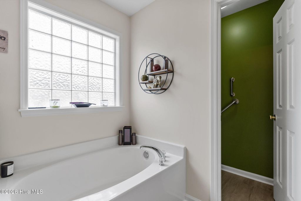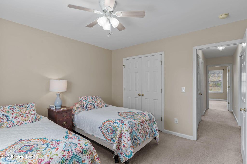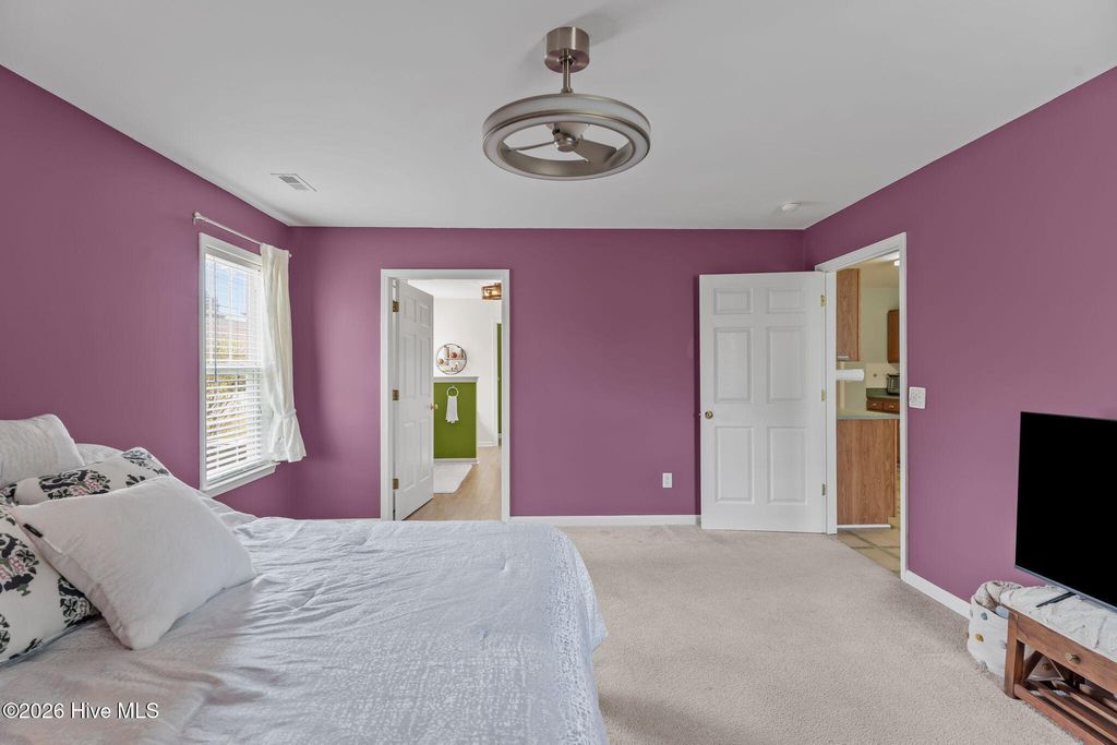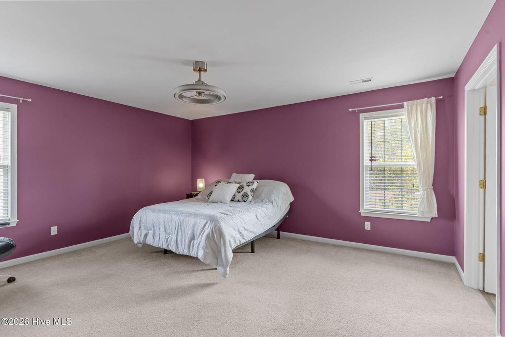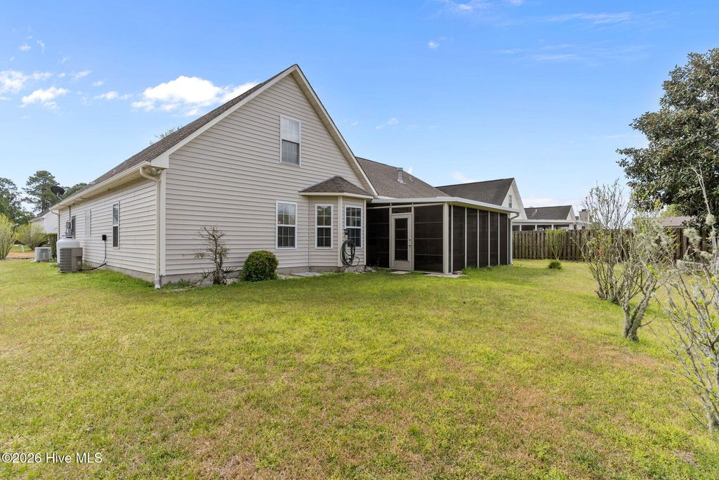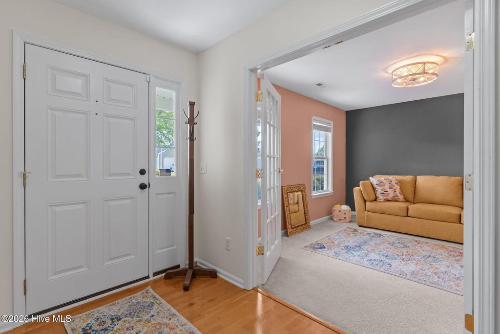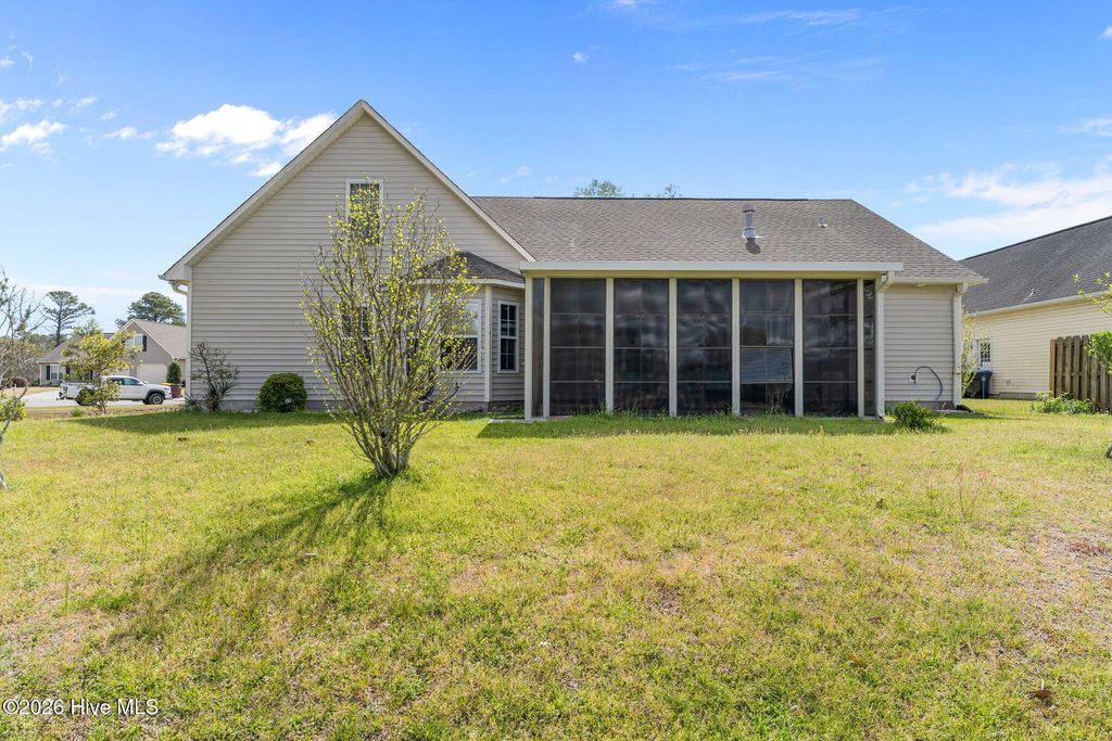 Welcome to this spacious suburban serenity with a first floor primary bedroom, two guest rooms with a private hall and shared bath in a split floor plan. As you walk in, a first floor office/flex space with french doors for entertaining or a functional home office greets you. Need another large bedroom? Head upstairs to the spacious fourth room with a half bath. Need storage unit space? Check out the walk in attic first! The two car garage comes with a refrigerator, and just outside the side door is the whole house generator. Heading back in to the house is a spacious area for the washer and dryer that could make a great mud room or pet station for baths, toys and treats. The living area comes with a fireplace and tall ceilings for cozy nights in the gentle southern winters. Love some indoor-outdoor space? Enter the very sizable all-seasons room, with windows that open individually for temperature control and breezy access as you sip your morning coffee and stare out at the heron and ducks that frequent the ponds. Don't want to stare at your neighbors back door? We've got you covered! The two ponds frame your sunset view as you walk the back of your property. Did we mention this home is on a cul-de-sac? Only one next door neighbor to your left, with two ponds, one behind and one to your right. And yet, all of this privacy does not lack convenience. 7208 Grizzly Bear Ct is only .6 miles to Military Cutoff Rd. Whisk yourself away into town for a shopping spree at Mayfaire town center or happy hour at any one of the well rated restaurants nearby.