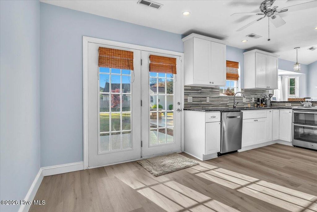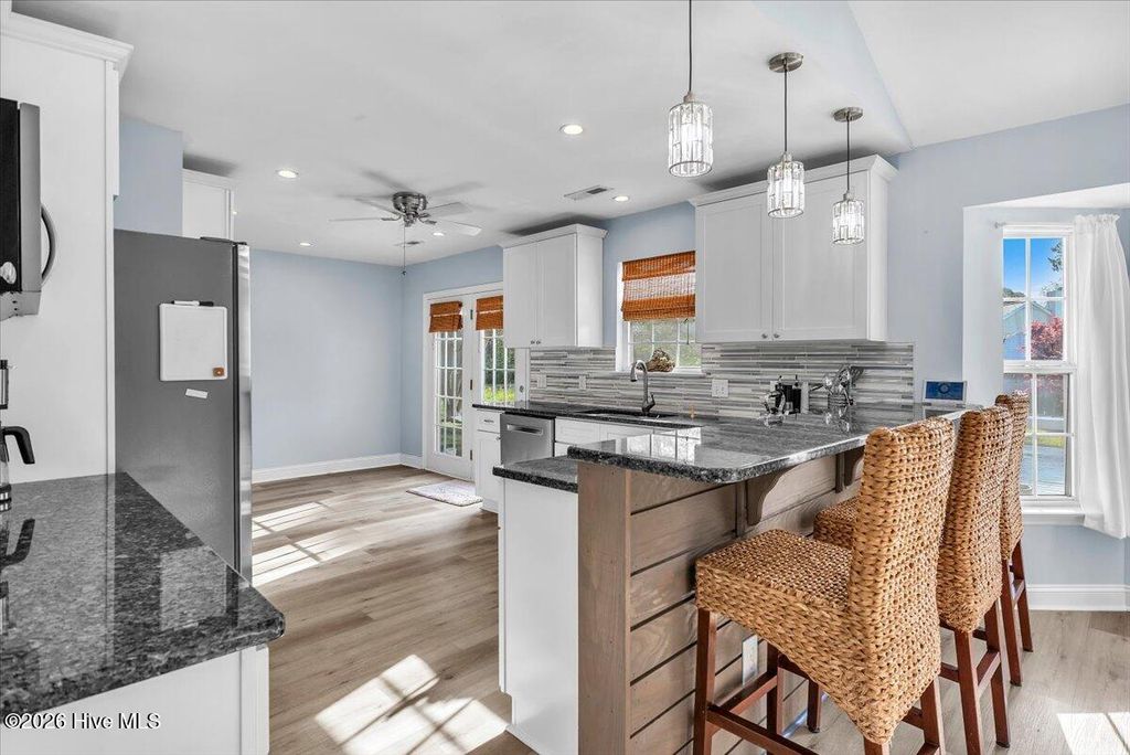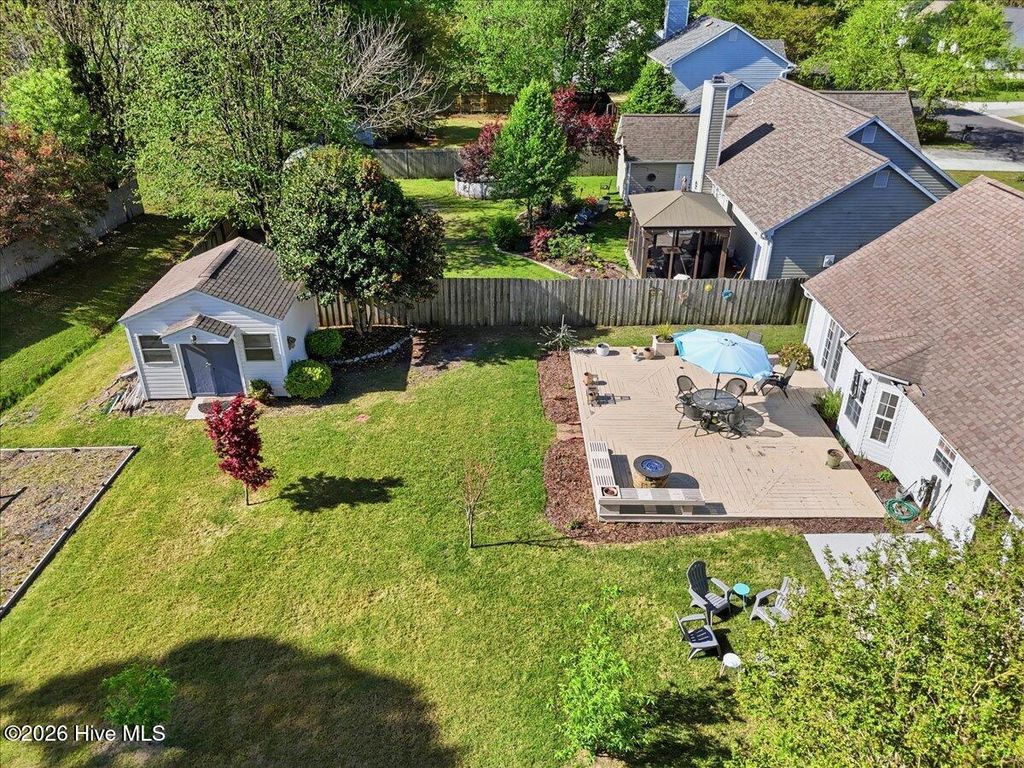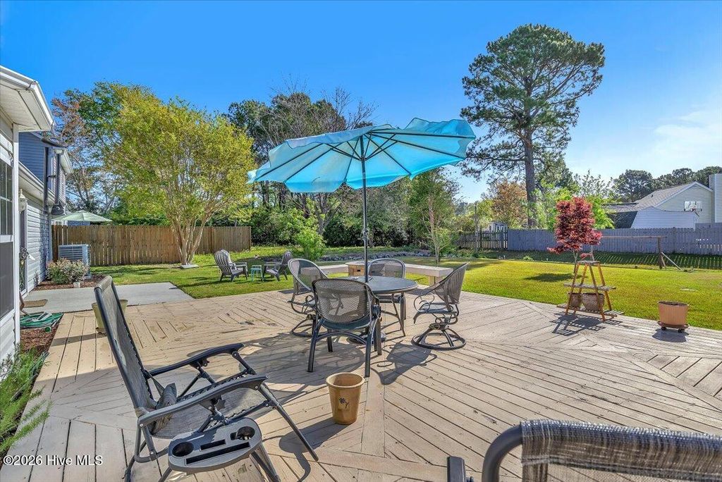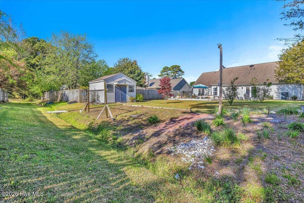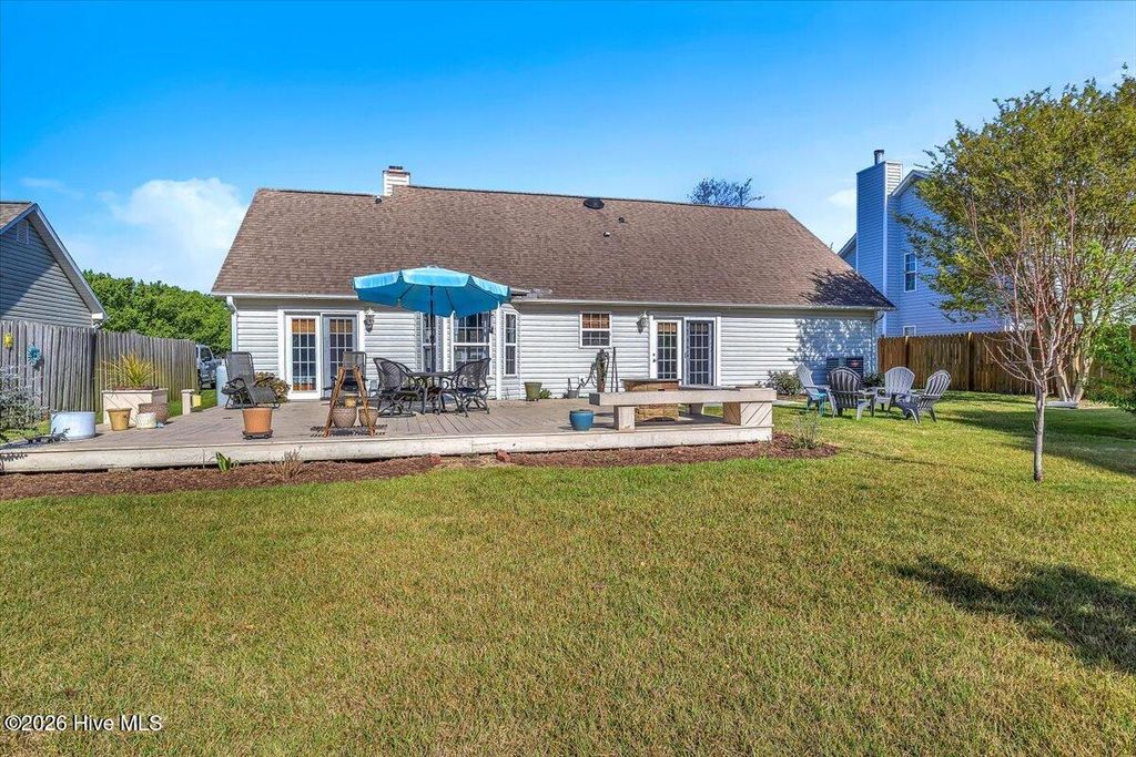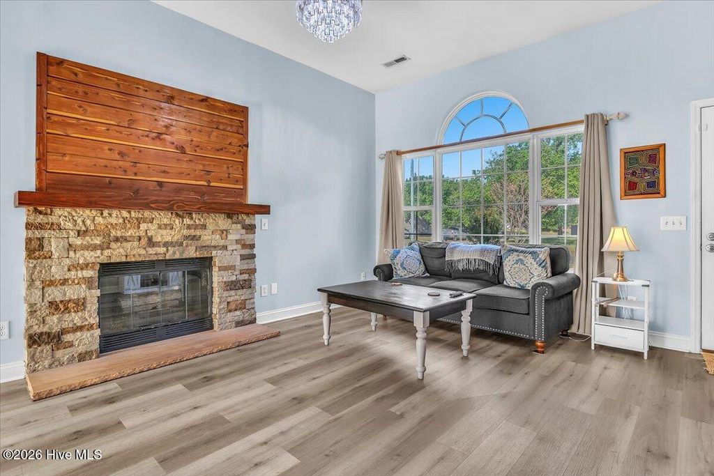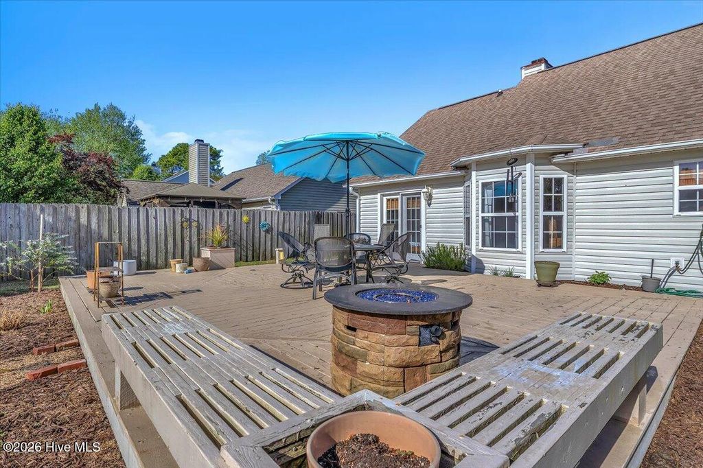 Welcome to The Shannon II, a charming Bill Clark home in Wilmington offering easy one-level living with 3 bedrooms and 2 baths. This move-in ready home features new luxury vinyl plank flooring, fresh paint, and updated lighting, creating a bright and modern feel throughout. The open-concept kitchen and dining area include granite countertops, ample cabinetry, and a convenient bar top--perfect for entertaining or casual meals. The inviting living room features a cozy propane fireplace with a cedar-style mantel and cultured stone surround. The spacious primary suite offers a walk-in closet and walk-in shower for everyday comfort. Step outside to enjoy a large backyard with both a patio and wood deck--ideal for outdoor living. The property also includes peach trees and a 14x14 wired workshop, perfect for hobbies, storage, or a home workspace. Located just minutes from shopping, dining, and area beaches, this well-maintained home combines comfort, convenience, and charm. No HOA