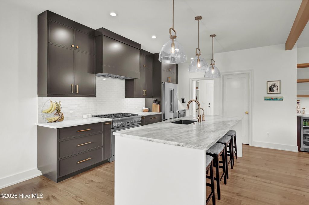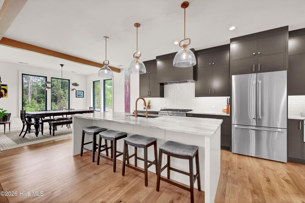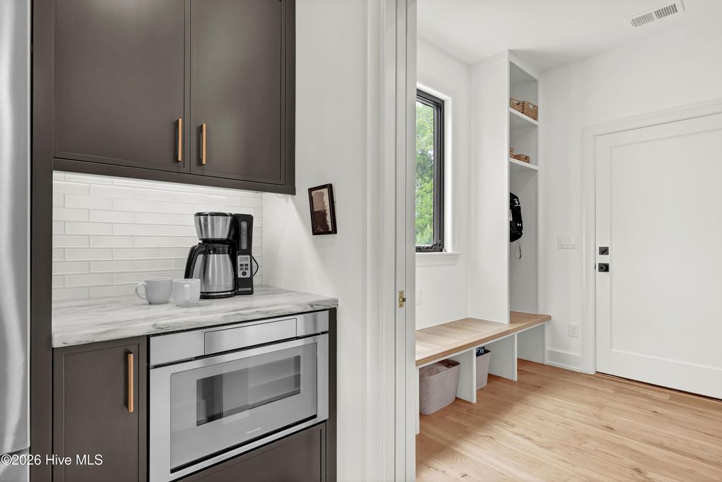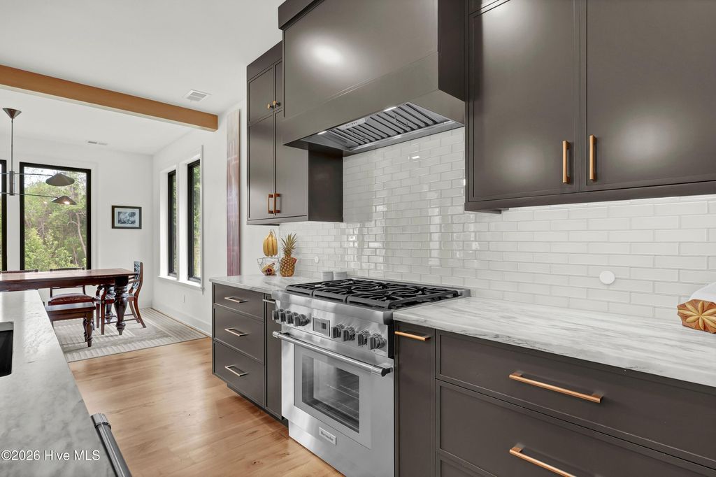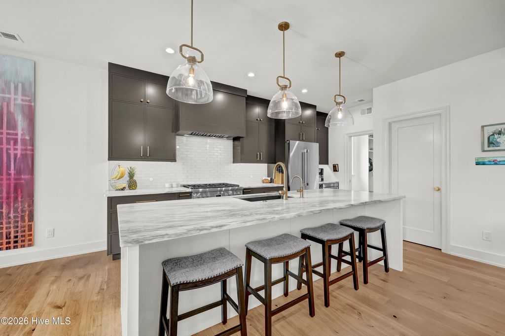 Simply the Best! Custom-built in 2025, this exceptional home offers impeccable quality, thoughtful design, and the ultimate coastal lifestyle within the gated waterfront community of Preservation Point. The open concept takes advantage of the private setting and natural lighting. Beautifully appointed chef's kitchen with Vermont marble countertops, large center island, Thermador professional-grade appliances that includes 6-burner gas range with vented exhaust, soft close cabinetry, walk-in pantry, and a dedicated coffee station with beverage refrigerator. Living room showcases a linear gas-log fireplace, custom built-ins, and expansive views of the rear yard. Primary suite with soaking tub, walk-in shower, double vanity with quartz countertops, and walk in closet with custom shelving. Downstairs study with stunning Ambrosia Maple ceiling. Upstairs, enjoy a flexible loft space, three additional bedrooms, and two full baths. Features include Andersen windows, French Oak flooring throughout the first floor, specialty trim and moldings, solid-core interior doors, multi-zoned high efficiency HVAC system, and gas tankless hot water heater. Preservation Point is a gated Cape Fear River community minutes from downtown and the beaches. Amenities include a private seven-acre island with pickleball courts, fire pits, dog park, and walking trails. Resort style pool, fitness center, and clubhouse. Marina with boat slips available for purchase by homeowners. Ready for your new lifestyle?