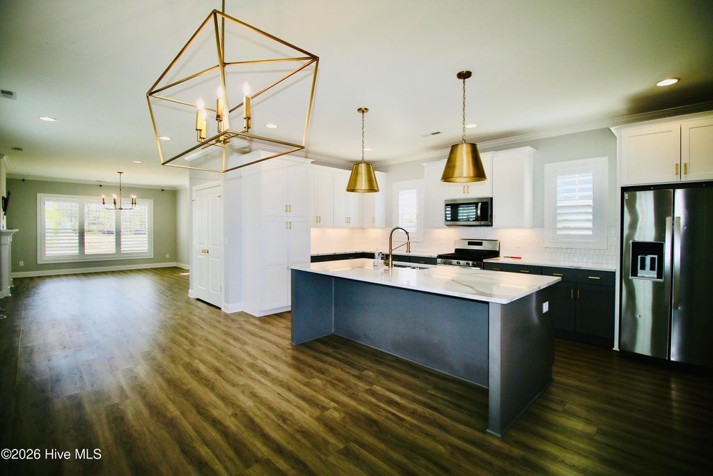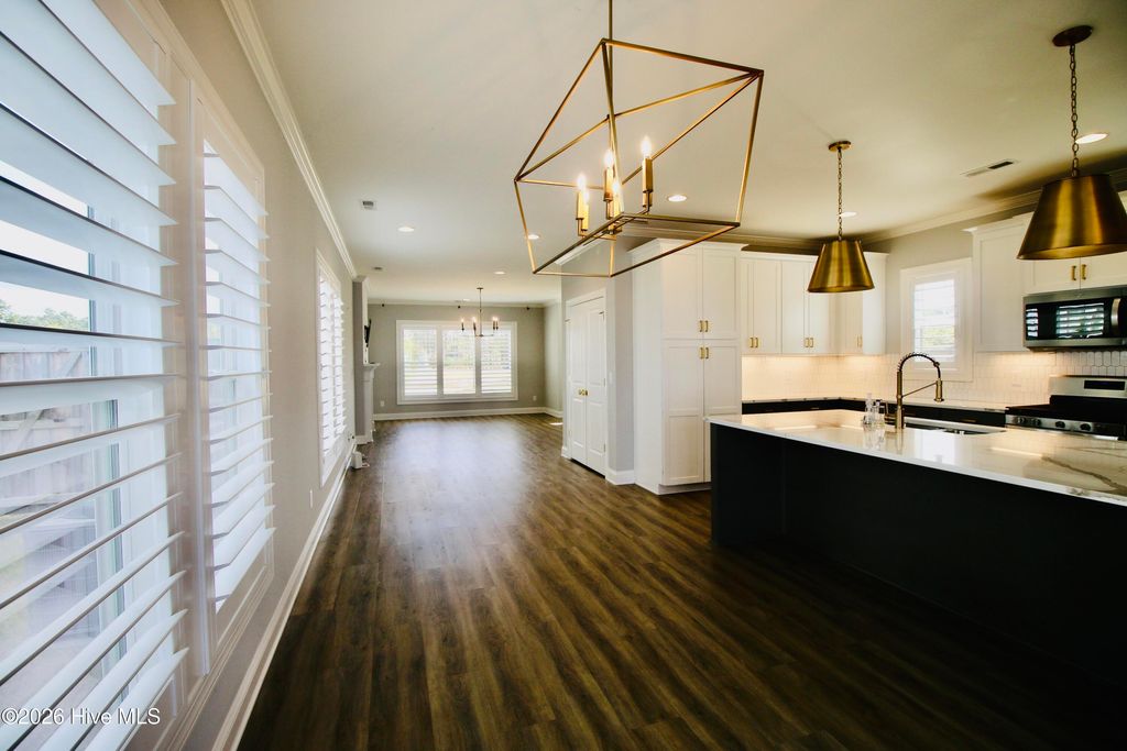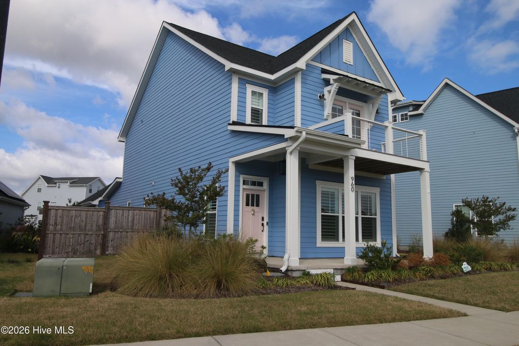 Situated within the master-planned community of Riverlights and offering resort-style amenities, this refined 3-bedroom, 2.5-bath residence includes quartz countertops throughout. Designer lighting, ceiling fans, LTV flooring in main living spaces, and tile in all bathrooms enhance the interior. The home features a dedicated ''Drop-Zone'' area, a spacious laundry room leading to a fully fenced backyard that ensures privacy, complemented by a covered patio and breezeway for evening enjoyment. Modern design elements such as cable railings and wide-slat plantation shutters are found throughout both the interior and exterior. The kitchen is equipped with energy-efficient SS appliances, an oversized island, and a generous dining area suitable for gatherings. The main living room offers a fireplace for relaxation, while the primary bedroom provides balcony access with unobstructed pond views, a walk-in closet, ensuite bathroom, and a sophisticated tiled walk-in shower. Additional amenities include a natural gas tankless water heater, detached two-car garage, small garden shed. Conveniently located near one of Riverlights' main entrances, residents can enjoy safe strolls along the pond via sidewalk pathways. RiverLights offers extensive amenities including various clubs and activities, outdoor pool, hot tub, firepit with seating, pickleball, tennis and bocce courts, as well as a scenic three-mile walking and biking path around the lake. Marina Village, located on the Cape Fear River and accessible by short drive or bike ride, features multiple shops and dining establishments, along with remarkable sunset views. Schedule a tour to discover all that this property and community have to offer.