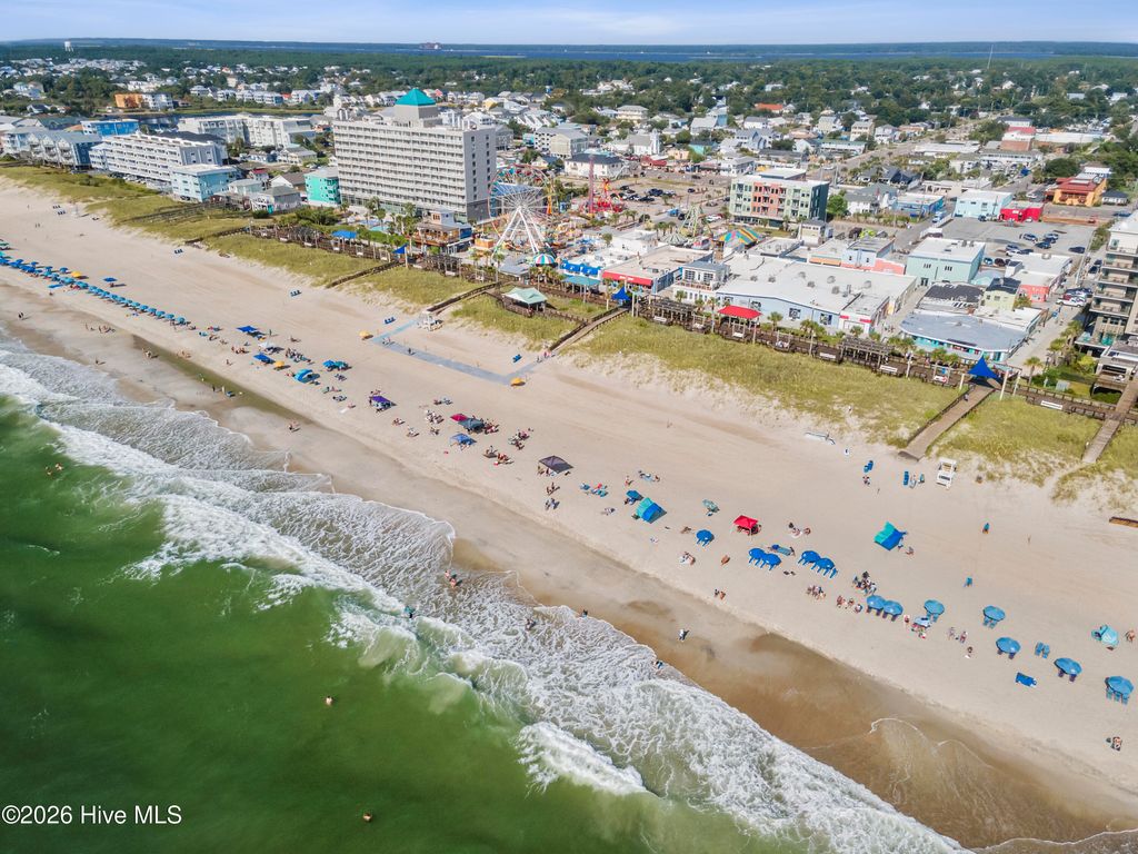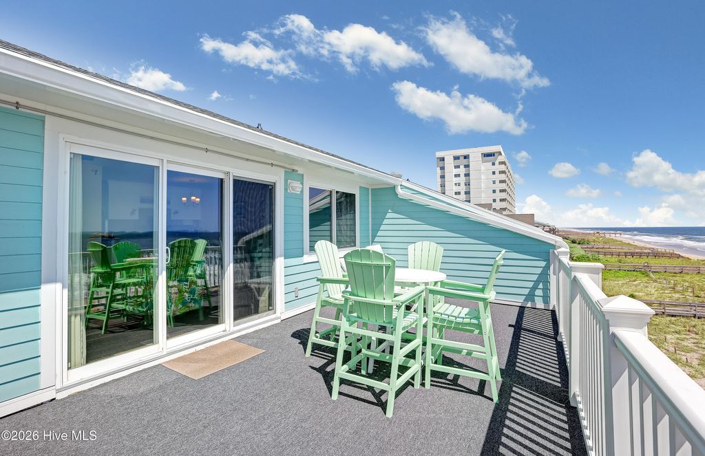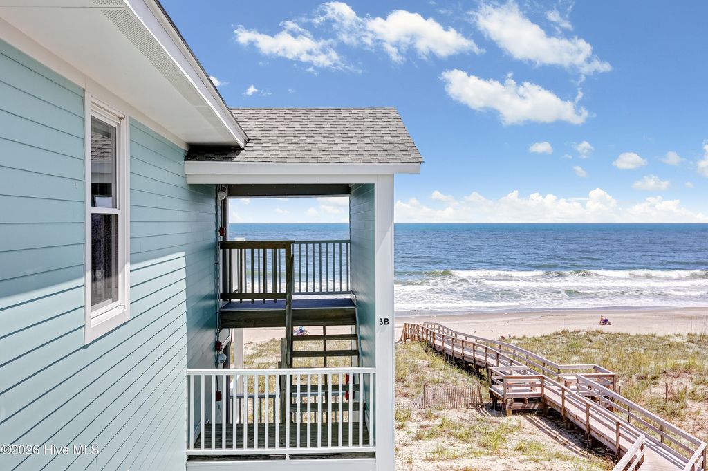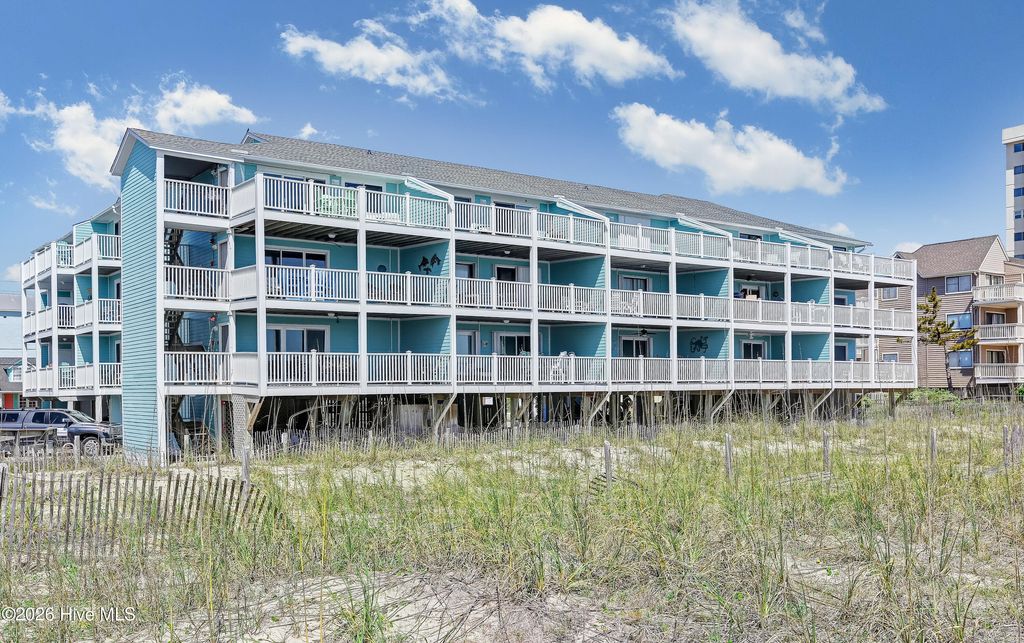 This is an incredible ocean front condo with amazing panoramic top level end unit shoreline views. The seller has mostly used this as a vacation rental. As a 3 BR, with a larger capacity, it is also a wonderful getaway for family and friends, when there is a vacancy. Vacation rental income has ranged from $41K to over $43K with nearly $32,000 booked for 2026 as of April. Some of the popular features in this ocean front condo are the walk in shower in the owner's bath and the private balcony along the side of the owner's bedroom, the beautiful quartz kitchen counters and the very handy ground level storage for chairs, carts and toys. The large ocean front balcony is the favorite feature with many hours enjoyed reading, relaxing, eating, drinking and catching up with good friends. Location as an end unit on the south side of the building is also a convenience with close proximity to the beach access. Kitchen renovations including the quartz counters and glass tile backsplash occurred in 2024. Also new LVP was installed in the bedrooms, at this time. A brand new HVAC was just installed 4/2026. The HOA has also kept up with important upgrades to the decks, rails, siding and roof for a well maintained building. The location of Sands V makes for an easy walk to the popular Ocean Grill and Tiki Bar. If you are new to this restaurant and bar, it is actually on the Pier so you can enjoy waves rolling in underneath you. Granny's Country Kitchen is also very close so you can enjoy a great breakfast before you hit the beach.
