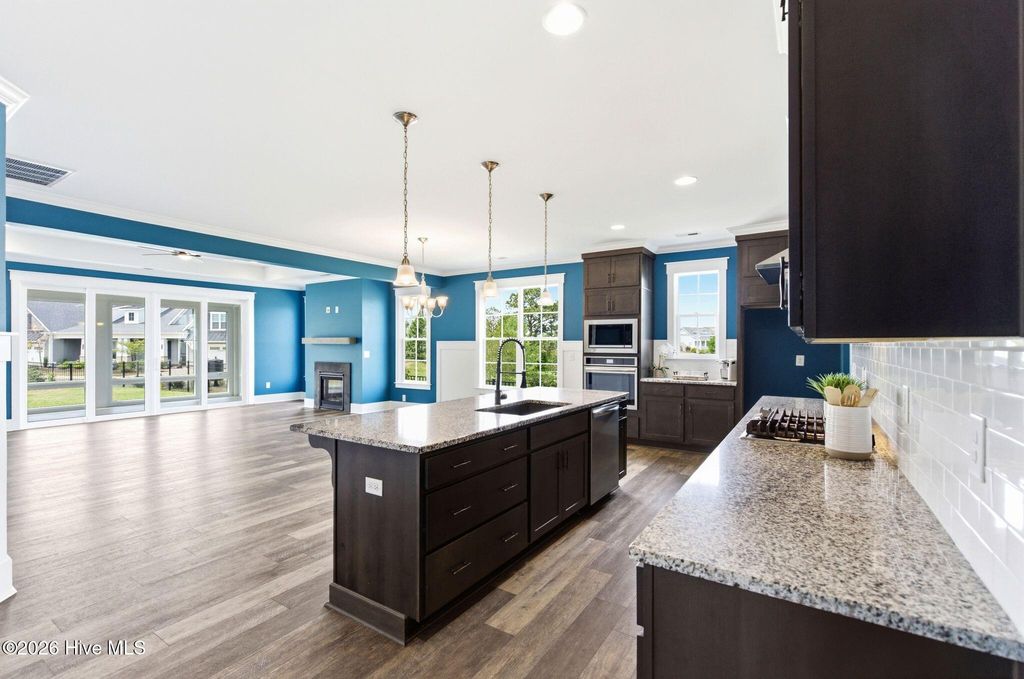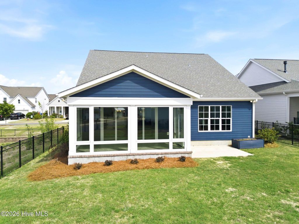 Step into easy, modern living in this thoughtfully designed 4-bedroom, 3.5-bath home built in 2023 by Legacy by Bill Clark. The heart of the home is a bright, open living, dining, and kitchen space that feels welcoming from the moment you walk in--perfect for everything from quiet mornings to hosting friends. The kitchen brings both style and function with ceiling-height cabinetry, a farmhouse sink, a sleek stainless steel hood vent, and a generously sized pantry that keeps everything within reach but neatly tucked away. Just off the kitchen--conveniently located near the pantry and garage--you'll find a spacious laundry room with a built-in wall tree, making everyday routines like unloading groceries or dropping bags and shoes simple and organized. Just off the front entry, a flexible room with French doors can work however you need it--home office, guest room, or a cozy reading space. The primary suite on the main level offers a peaceful retreat with a beautifully finished ensuite and an impressively large walk-in closet complete with upgraded shelving. A third bedroom on the main floor adds extra convenience for guests or everyday living. Upstairs, you'll find a private bedroom, full bath, and a spacious closet, along with a separate storage room--ideal for keeping things organized but out of sight. The two-car garage adds even more functionality, featuring an added surge protector and an EV charging outlet for modern convenience. One of the standout features is the enclosed four-seasons room out back, complete with its own mini-split system, making it a comfortable spot to relax year-round. From there, you can take in views of the large, fenced backyard that backs up to a pond--offering a little extra privacy and a peaceful backdrop to end your day. It's a home that balances comfort, flexibility, and just the right amount of upgraded touches--all in a layout that simply makes sense.