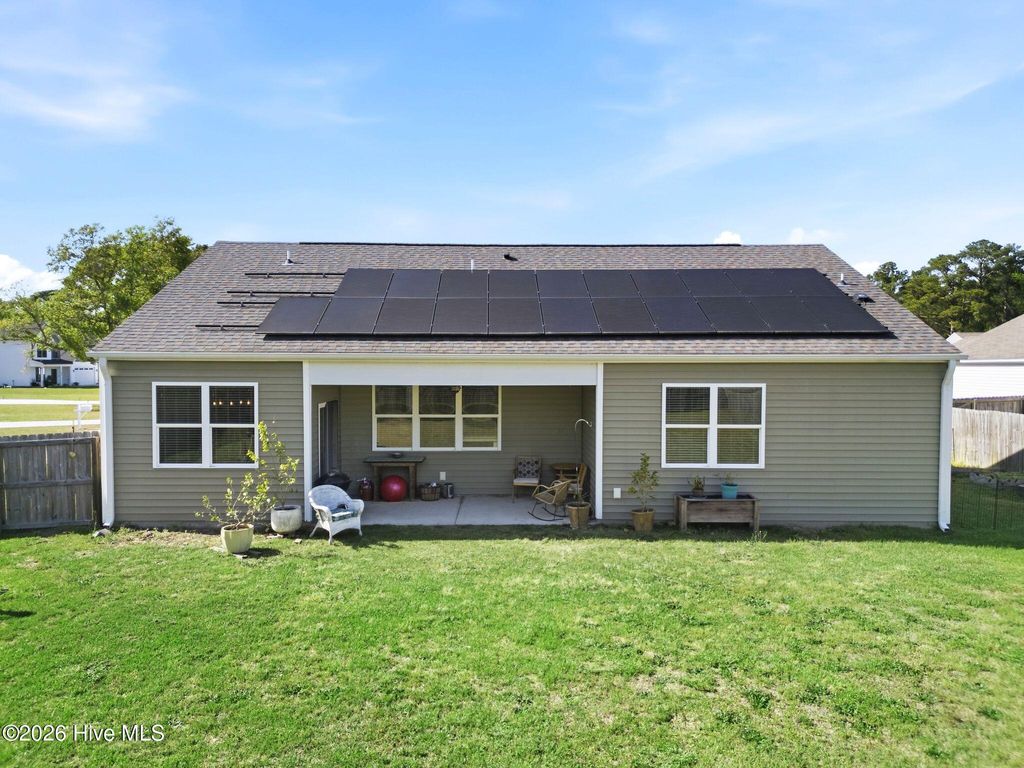 This is a wonderfully laid out home that offers a peaceful atmosphere while outside as well as inside the home. Outside we have solar panels that are paid for as well as a EV power source for your electric vehicle. Lets go inside. From the inviting foyer into the great room that is open to a well functioning kitchen with a large island that flows to the breakfast nook to the outside covered patio. This split floor has the master behind the garage for a peaceful, serene primary bedroom. From the kitchen to the side of the home with the second and third bedrooms. This home has the fuctionality for todays modern homeowner and necessities.
