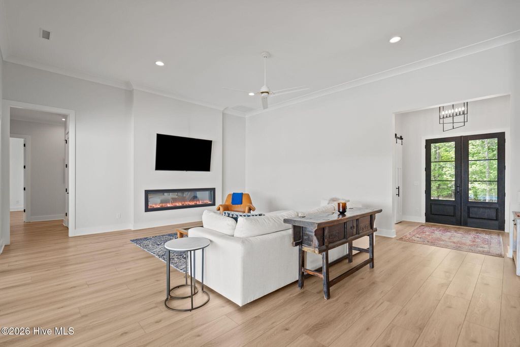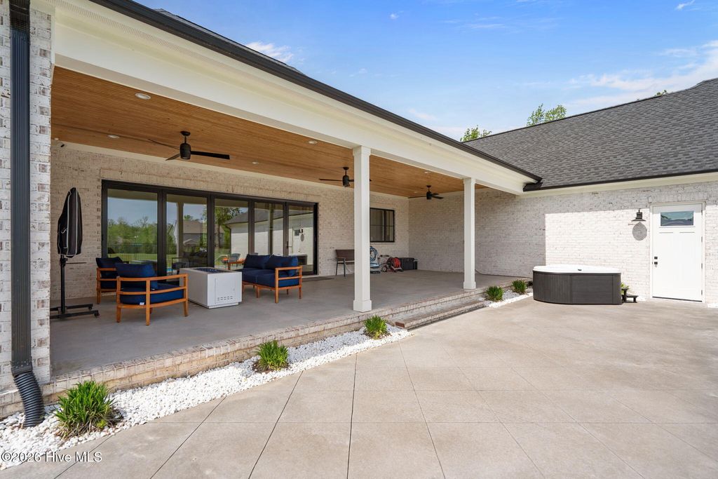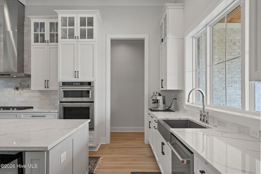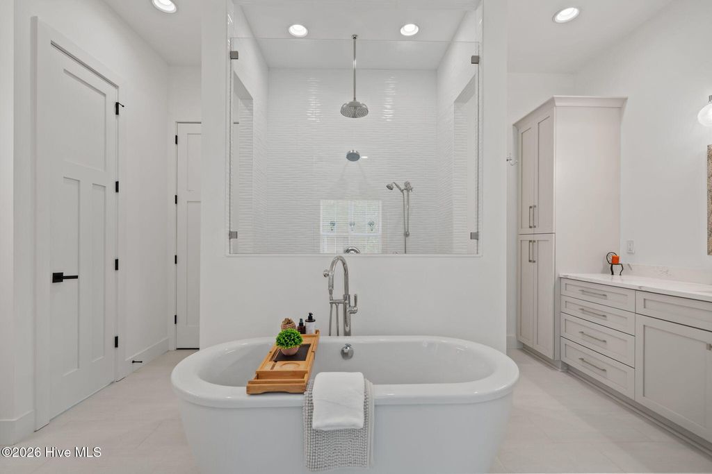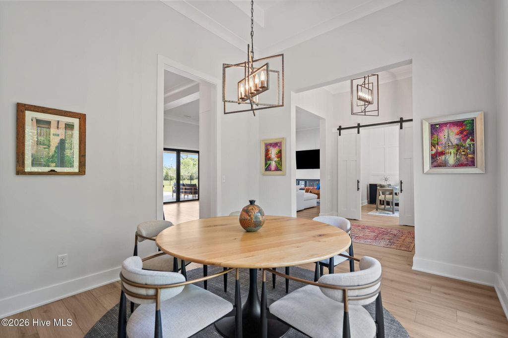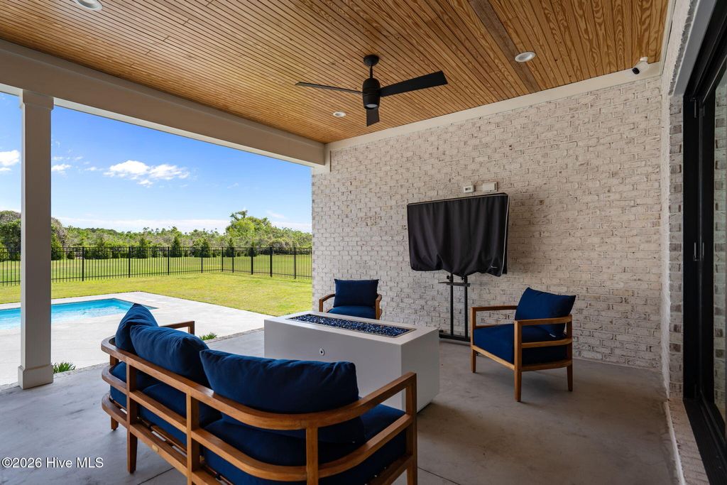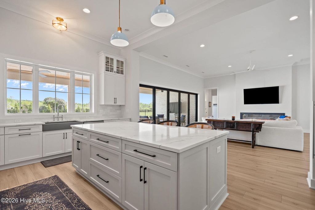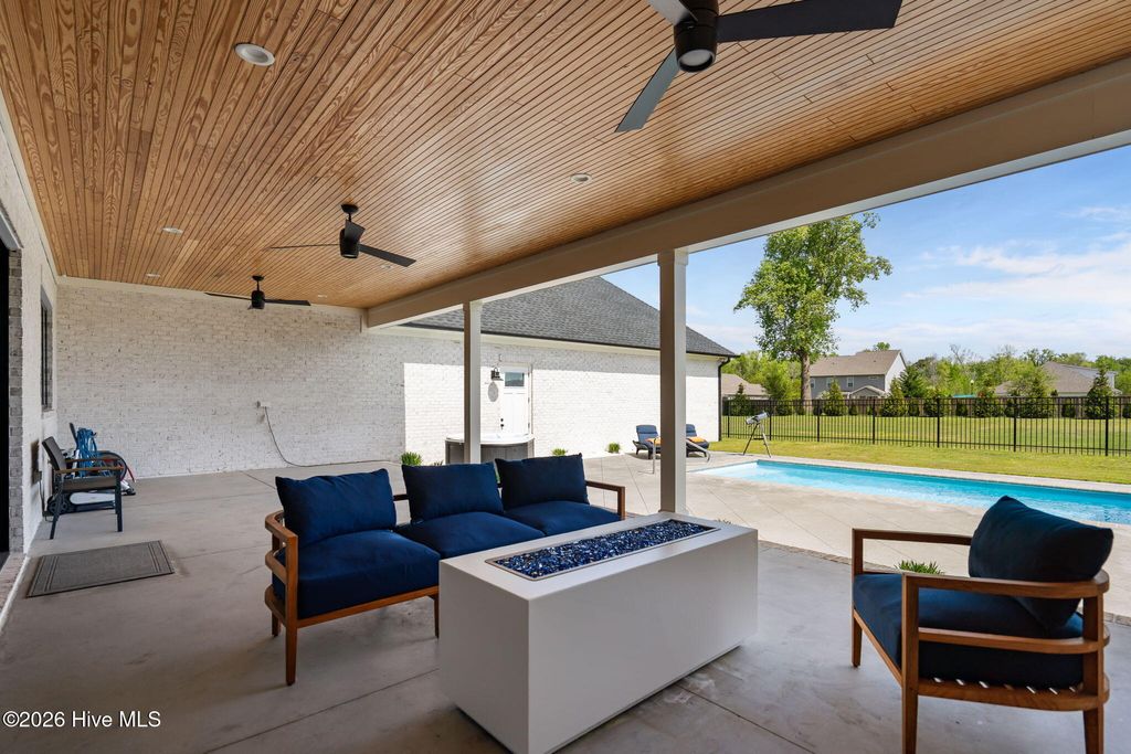 Welcome to a truly exceptional custom-built residence where timeless design meets modern luxury. The white brick, architectural rooflines & inviting front porch set the tone for what lies within. Inside, soaring ceilings, 8' doors, expansive windows & impeccable finishes a grand and warmly inviting feel. Every detail has been carefully curated, showcasing custom craftsmanship throughout and a thoughtful floor plan. The heart of the home is the stunning chef's kitchen, w/huge quartz island. Custom cabinetry features glass-front uppers, abundant storage & high-end appliances including a gas cooktop, wall ovens, and a wine refrigerator. The primary suite is a private sanctuary, offering spacious proportions and refined finishes. The spa-inspired bath elevates daily living w/ luxurious soaking tub, dual vanities, & a spectacular walk-through shower, creating a serene retreat. Large custom closets complete the suite with both style and function. Additional bedrooms are generously sized with access to beautifully finished baths, while a dedicated office provides flexibility for working from home or a quiet retreat space. A well-designed laundry room and ample storage enhance everyday convenience, while the home's layout offers the perfect balance of openness and privacy. Step outside to experience true resort-style living. The covered rear patio overlooks a stunning in-ground pool, complete w/ hot tub. Expansive lush yard w/ wifi controlled irrigation, offering exceptional space for animals, gardening, recreation, or simply enjoying unmatched privacy. Residents of Whitebridge enjoy an equestrian-friendly atmosphere along with a community pool, tennis courts, scenic bird sanctuary, ponds, and nature trails. Whitebridge offers the perfect blend of luxury living and an active outdoor lifestyle, all while being just minutes from shopping, dining, top-rated schools, and with easy access to Topsail Island beaches and coastal attractions.