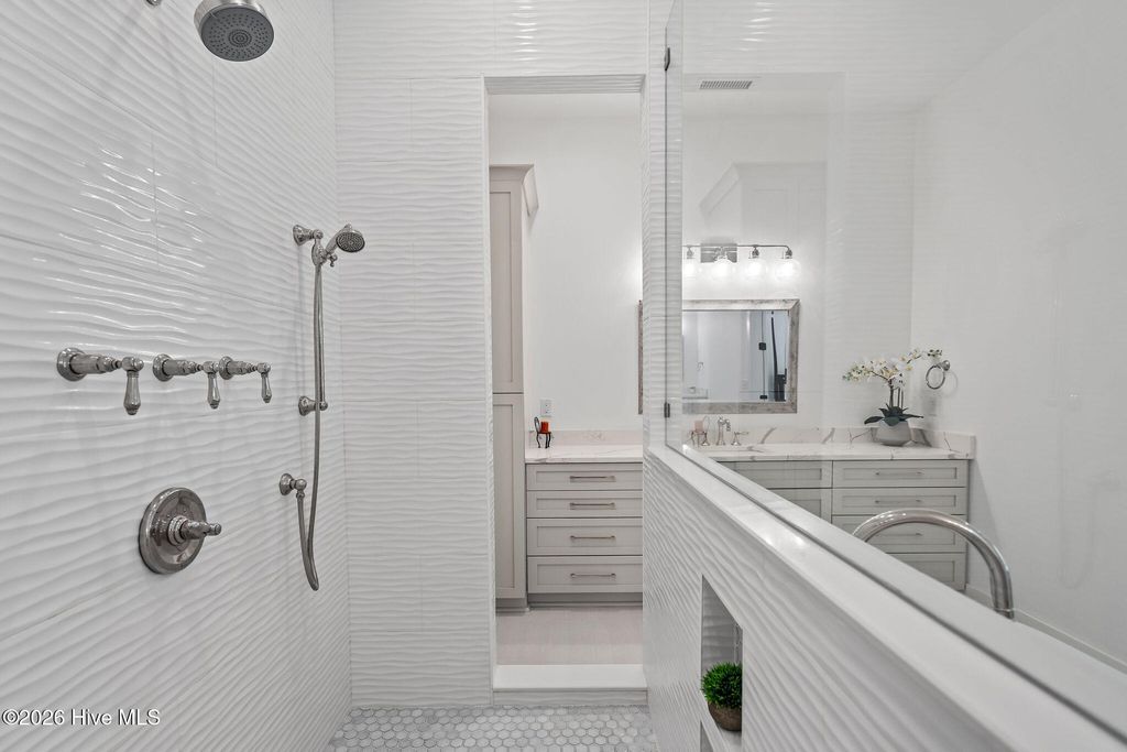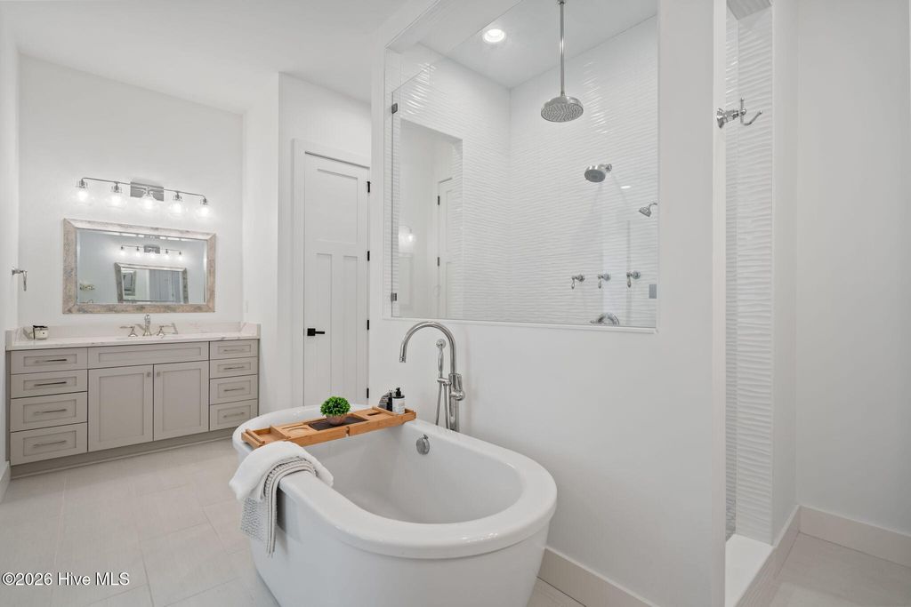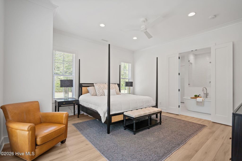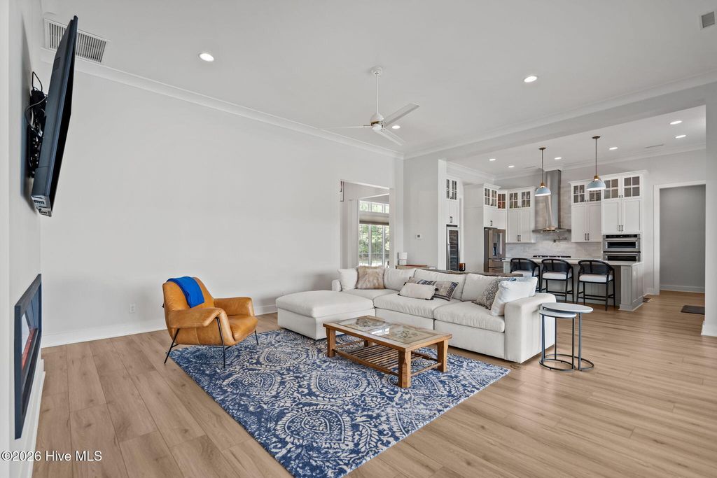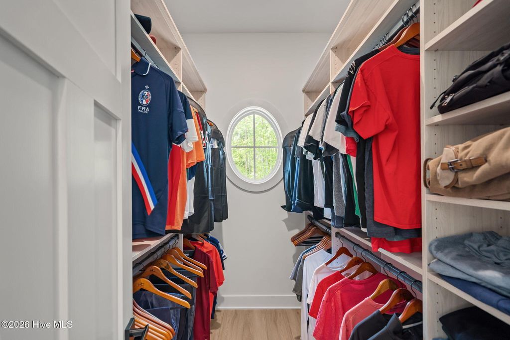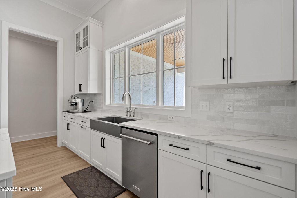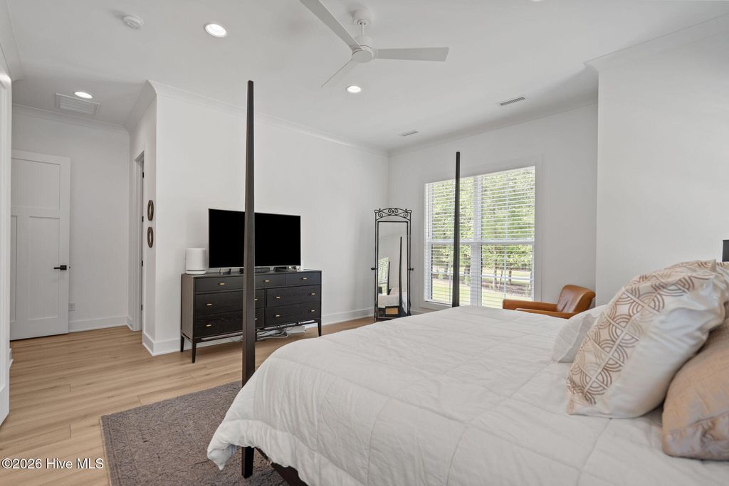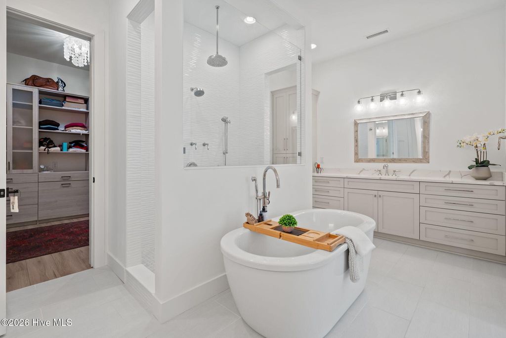 Welcome to a truly exceptional custom-built residence where timeless design meets modern luxury. The white brick, architectural rooflines & inviting front porch set the tone for what lies within. Inside, soaring ceilings, 8' doors, expansive windows & impeccable finishes a grand and warmly inviting feel. Every detail has been carefully curated, showcasing custom craftsmanship throughout and a thoughtful floor plan. The heart of the home is the stunning chef's kitchen, w/huge quartz island. Custom cabinetry features glass-front uppers, abundant storage & high-end appliances including a gas cooktop, wall ovens, and a wine refrigerator. The primary suite is a private sanctuary, offering spacious proportions and refined finishes. The spa-inspired bath elevates daily living w/ luxurious soaking tub, dual vanities, & a spectacular walk-through shower, creating a serene retreat. Large custom closets complete the suite with both style and function. Additional bedrooms are generously sized with access to beautifully finished baths, while a dedicated office provides flexibility for working from home or a quiet retreat space. A well-designed laundry room and ample storage enhance everyday convenience, while the home's layout offers the perfect balance of openness and privacy. Step outside to experience true resort-style living. The covered rear patio overlooks a stunning in-ground pool, complete w/ hot tub. Expansive lush yard w/ wifi controlled irrigation, offering exceptional space for animals, gardening, recreation, or simply enjoying unmatched privacy. Residents of Whitebridge enjoy an equestrian-friendly atmosphere along with a community pool, tennis courts, scenic bird sanctuary, ponds, and nature trails. Whitebridge offers the perfect blend of luxury living and an active outdoor lifestyle, all while being just minutes from shopping, dining, top-rated schools, and with easy access to Topsail Island beaches and coastal attractions.