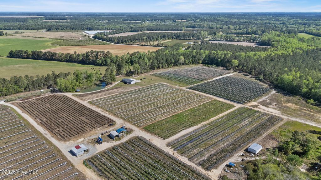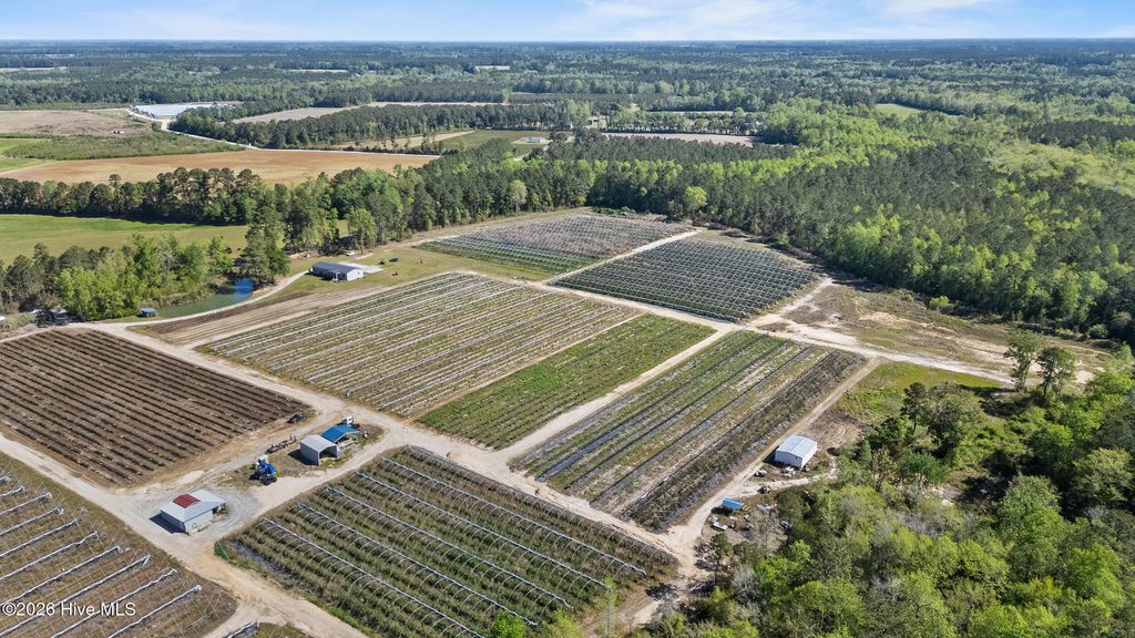 *** 2 PARCELS : 33 ACRES TOTAL FOR SALE !! *** A charming country residence sits peacefully on 33 acres of land, offering four spacious bedrooms and two-and-a-half bathrooms designed for comfortable family living. The open-concept features a bright kitchen with a huge island, a cozy living room with a fireplace, and large windows that frame sweeping views of blackberries and blueberries. Outside, the property includes a stocked catfish pond, a duck impoundment, mature woodlands ideal for trails or hunting, and ample room for gardens, livestock, or future expansions--an idyllic blend of farm land and serene, private country living. Only 30 minutes from downtown Wilmington! Currently producing are 2.5 acres of Ponca blackberries, 2 acres of Legacy blueberries, 1 acre of Powder Blue blueberries, & overall about 25 acres of palatable land! The property is equipped with 28 foot wide Haygrove high tunnels that are specialized, steel-framed greenhouse structures designed for intensive agriculture to extend the growing season, protect crops from adverse weather (rain, wind, frost), and improve produce quality and yield - poly plastic and rope come with.