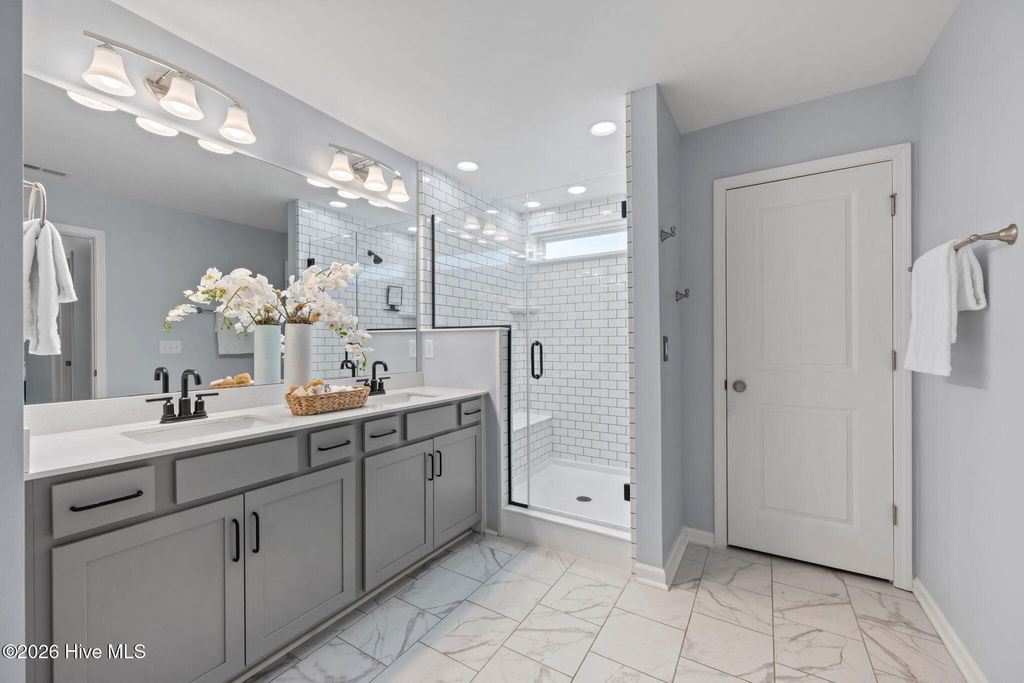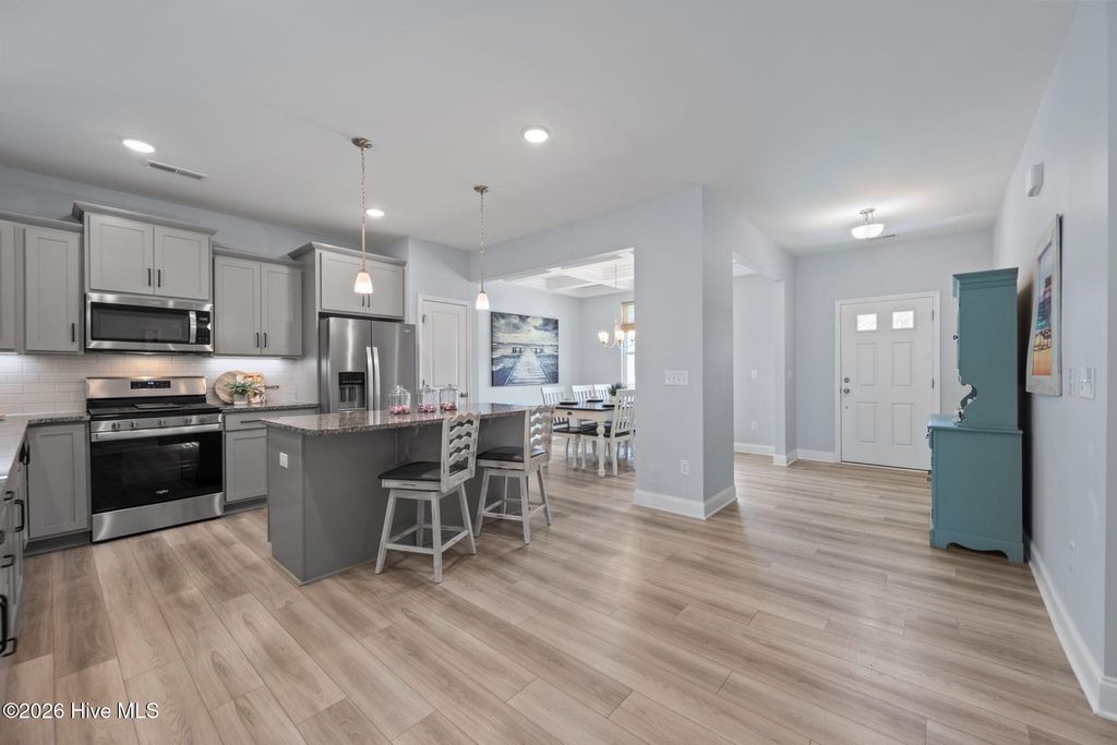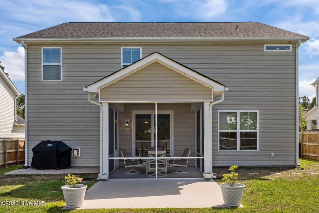 Mother-in-law suite and second laundry room! So many great features: natural gas with direct line to exterior grill, fully fenced yard, brand new screened porch with large breed animal door, newly finished garage with epoxy flooring, built in dog door next to slider, extra large laundry room upstairs, upgraded carpet and flooring throughout, located on a dead-end, and so much more! Did we mention the included Surf City parking passes and that the seller is offering a 1 year home warranty!? Furnishings can be included in the sale! This impressive 4-bedroom, 4-bathroom move-in ready, meticulously maintained, Modern Coastal single-family home offers approximately 3,175 sq ft of thoughtfully designed living space. Built in 2022 by Windsor Homes, this nearly new Seagrove floor plan delivers modern comforts and coastal style in the highly desirable Terraces community. Step inside to an open-concept layout perfect for family living and entertaining. The home features generous room sizes, abundant natural light, and contemporary finishes throughout. The primary suite offers a luxurious retreat, while the additional bedrooms provide flexibility for family, guests, or a home office. A 2-car garage provides convenient parking and storage. The Terraces is a sought-after natural gas community with excellent amenities, including a community pool, scenic lake with kayak launch and dock, sidewalks, and outdoor picnic/grilling areas. Residents enjoy low-maintenance living with high-speed fiber optic internet. Located halfway between Wilmington and Jacksonville, this home offers the perfect blend of convenience and coastal lifestyle. Just minutes from shopping, dining, and the pristine beaches of Surf City and Topsail Island, residents also benefit from easy access to the Intracoastal Waterway for boating and fishing. Children attend highly rated Pender County Schools, known for strong academics and community involvement. Whether you're looking for a primary residence or a low-maintenance coastal retreat, this updated modern home in a prime Hampstead location checks all the boxes. Don't miss your opportunity to call The Terraces home--schedule your private showing today! This move-in-ready Windsor Homes gem in The Terraces offers unmatched coastal convenience and modern living--don't miss your chance to own in this fast-growing, sought-after area!