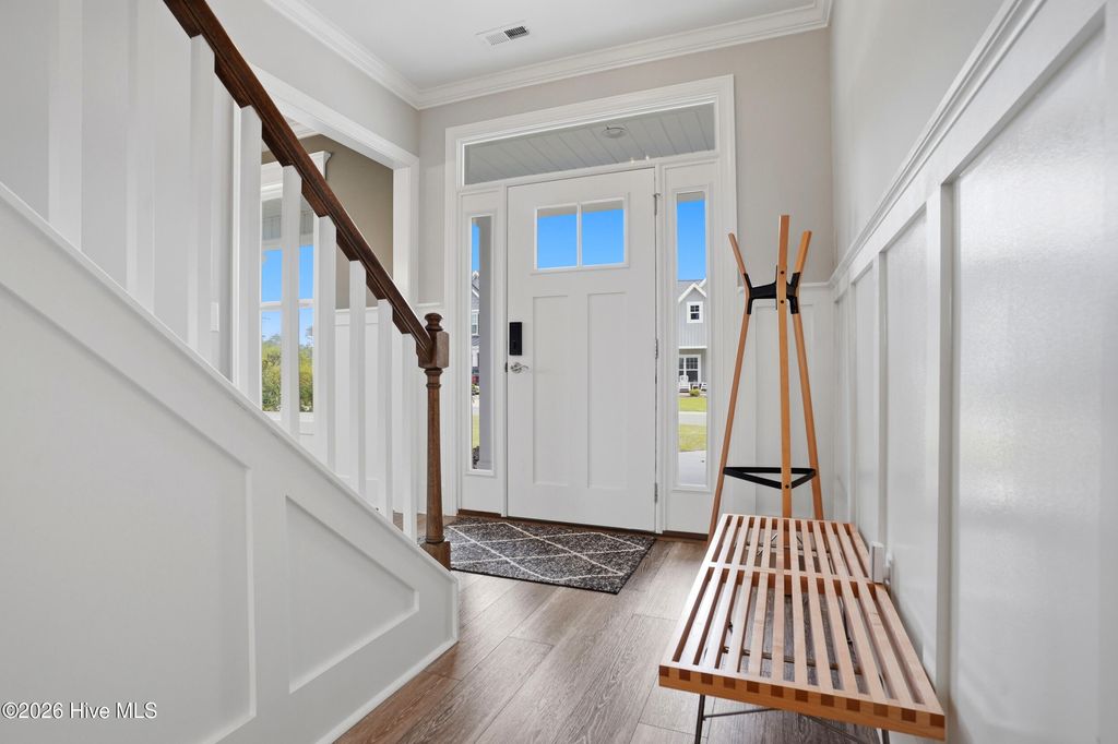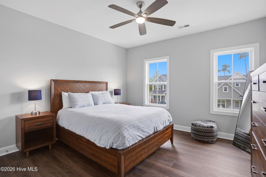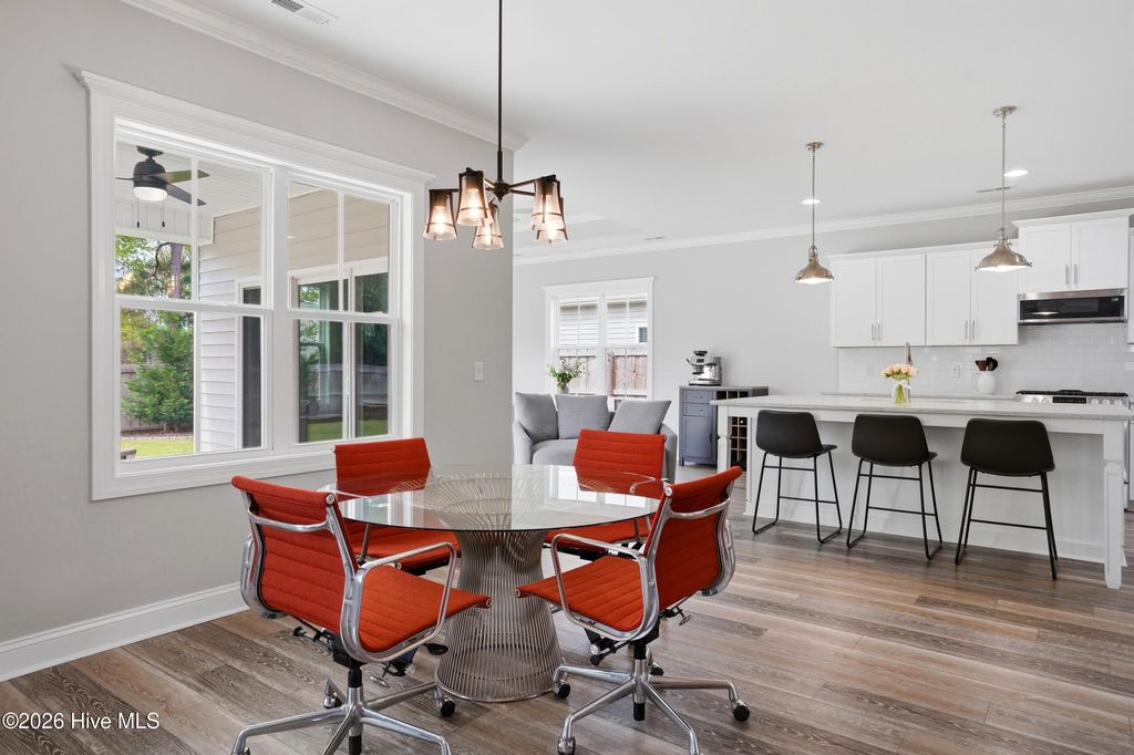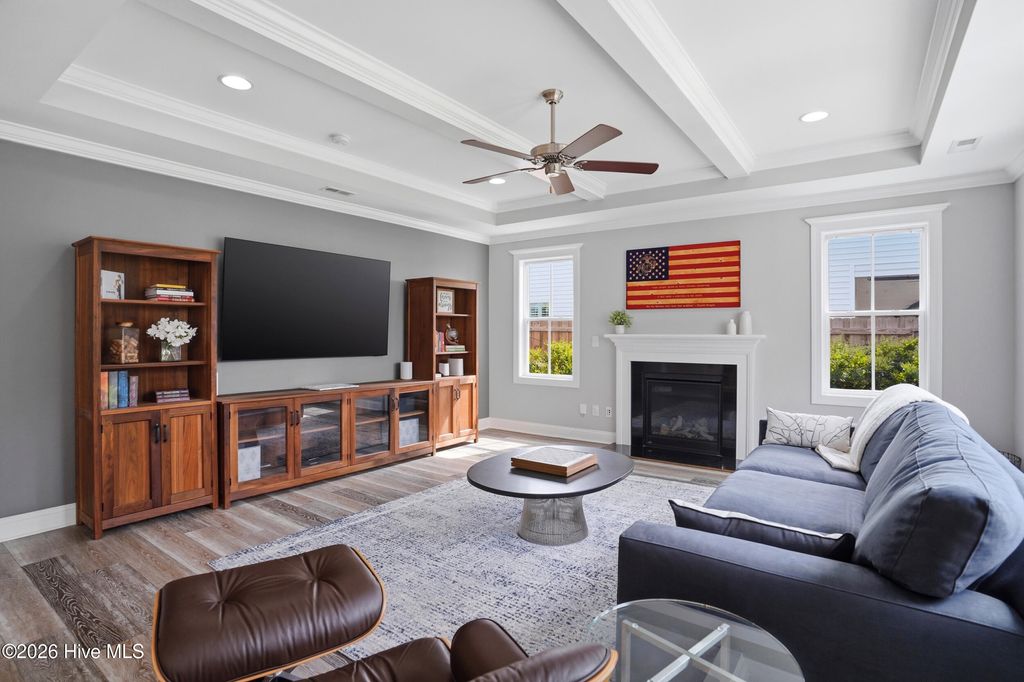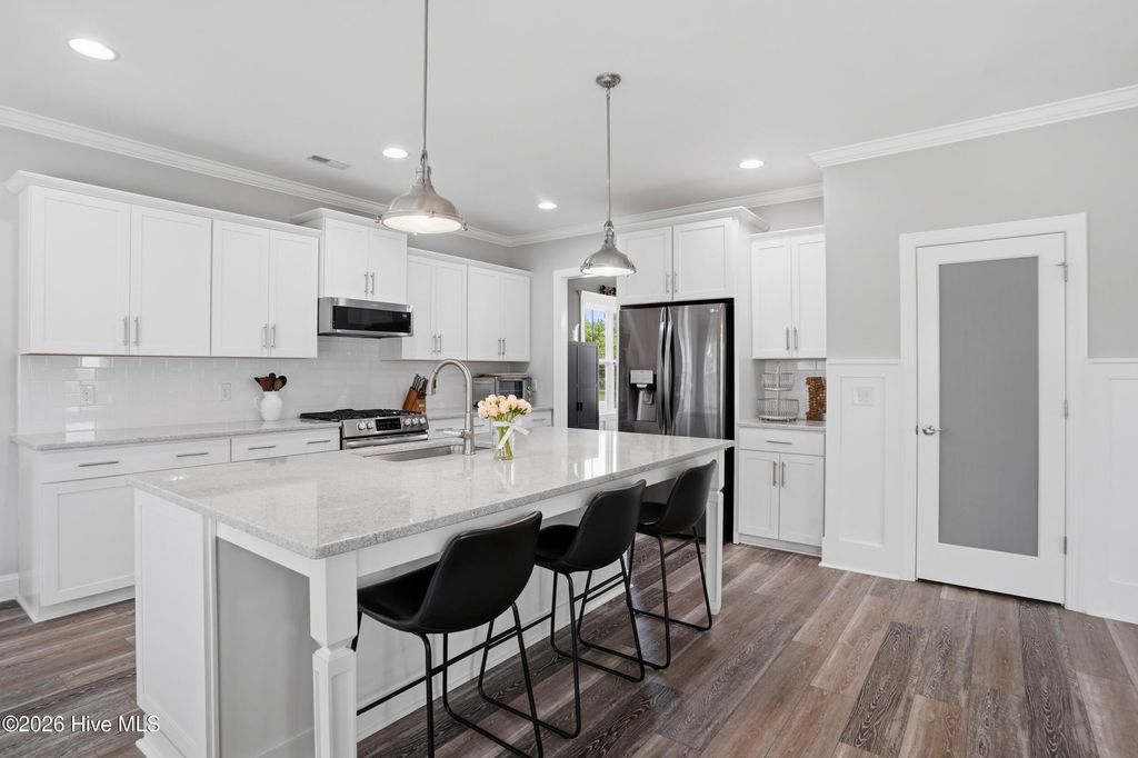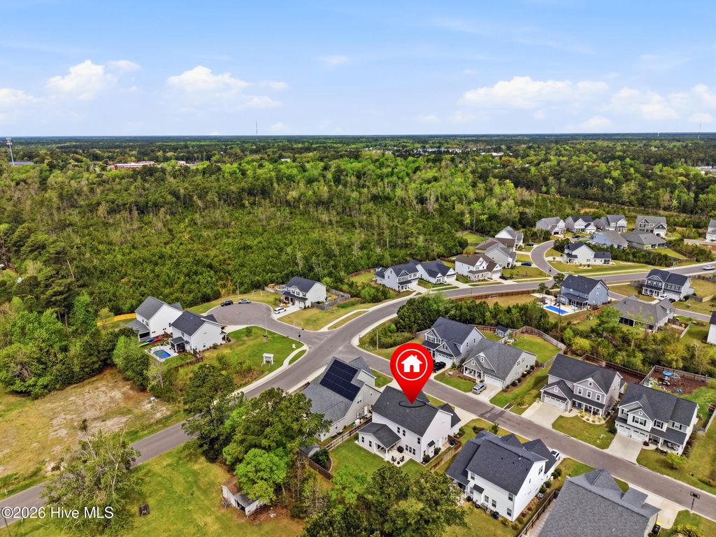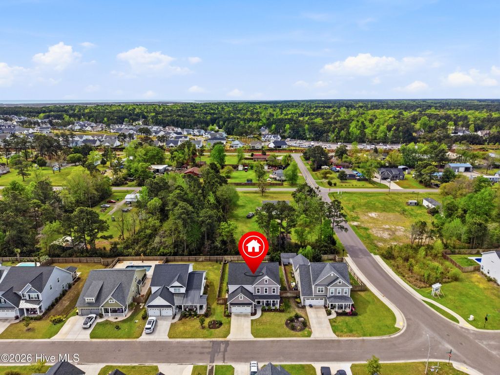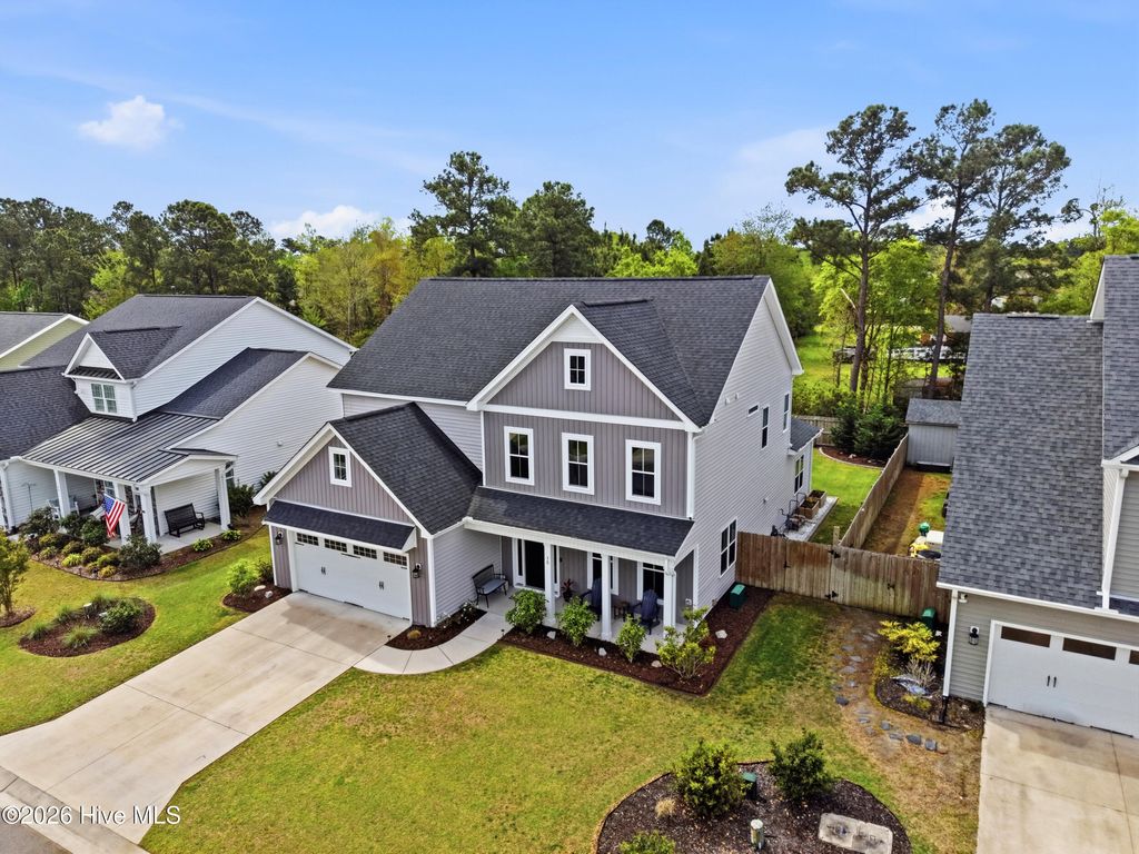 Experience the perfect blend of coastal tranquility and sophisticated modern living at 30 Man O War Lane, a stunning Hall Crest floorplan crafted by the award-winning Hardison Building Company. Located in the highly sought after community of The Sanctuary at Forest Sound, this home is situated just a mile from the Intracoastal Waterway, offering an unparalleled lifestyle for those who love the water. From the moment you step onto the charming rocking chair front porch, you are greeted by an interior designed for both grand entertaining and quiet relaxation, featuring expansive open spaces and high end finishes throughout. The heart of the home is a gourmet chef's kitchen, anchored by a massive center island, classic tile backsplash, and premium stainless-steel appliances including a natural gas range. This space flows seamlessly into a magnificent great room, where the warmth of a natural gas fireplace is complemented by elegant beam accented ceilings. Large windows invite natural light to dance across the stylish flooring, while a spacious covered rear porch extends the living area outdoors, overlooking a fully sodded and irrigated yard perfect for alfresco dining in the coastal breeze. Personal luxury awaits in the primary master suite, a true sanctuary featuring trey ceilings and a spa inspired bathroom. This private retreat boasts a fully tiled walk-in shower, dual quartz vanities, and a massive walk-in closet with convenient direct access to additional storage. The second floor provides ample space for family or guests with three additional bedrooms and two full bathrooms; all finished with the same attention to detail as found on the main level. Beyond the doorstep, the lifestyle offered by this location is second to none. Residents of The Sanctuary at Forest Sound will soon enjoy the convenience of dedicated RV and boat storage, reflecting the community's maritime spirit. Perfectly positioned in the heart of Hampstead, you are only fifteen minutes from the pristine sands of Topsail Island and a short drive to the vibrant shopping and dining of Wilmington. With a professionally landscaped lot and a thoughtful design, this home is not just a place to live; it is the ultimate backdrop for your coastal North Carolina chapter.