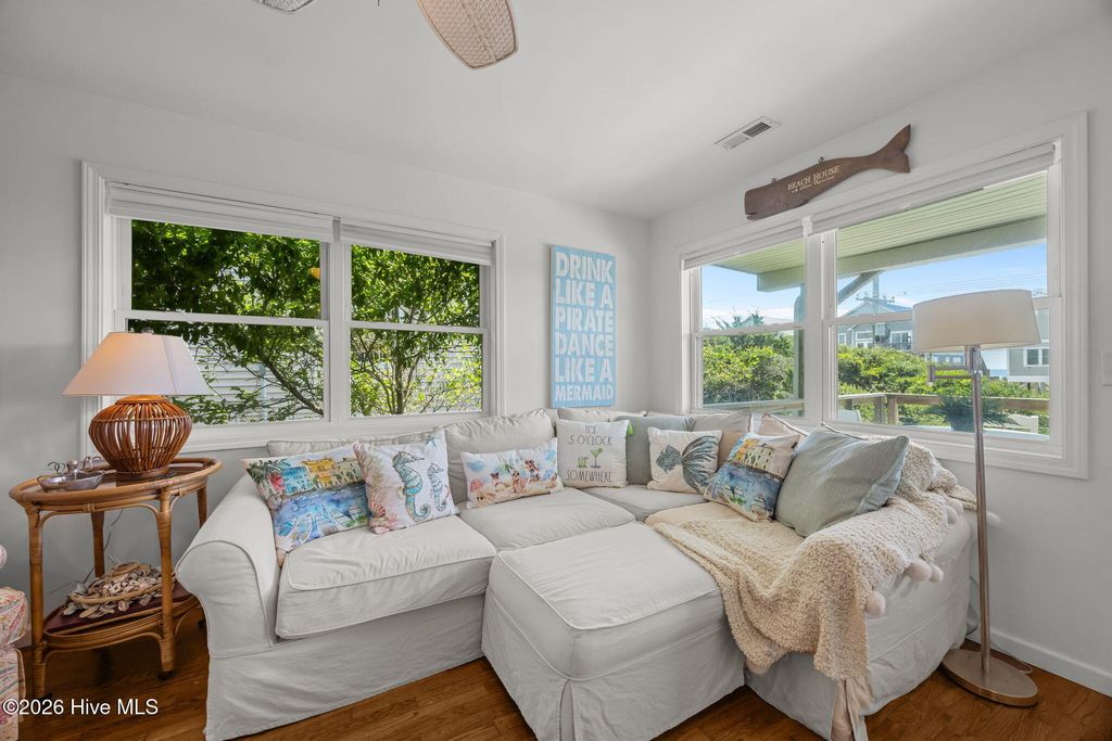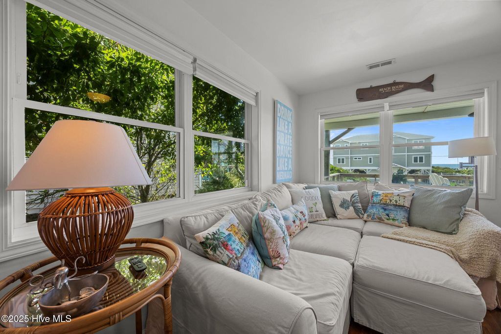 Take in the Ocean breeze from this completely Updated 2nd row cottage. Outside you will find a large porch with Unobstructed Ocean views. Directly across the street is Surf City Beach Access #29. Rinse off in the exterior shower after the day at the beach. Once inside enjoy the Ocean views from the living area & master bedroom relaxing is a must in this fully furnished home. Pamper yourself in the walk in shower & spa feeling bathroom. Gather at the large kitchen island with friends while entertaining from this chef friendly kitchen. A 2bedroom cottage with the potential to grow being located in the X flood zone a ground level extra bedroom/bath is a possibility. This property has the character Topsail is known for complete with today's modern luxury upgrades. Find the feature list & rental projection in the documents & book your showing appointment today!