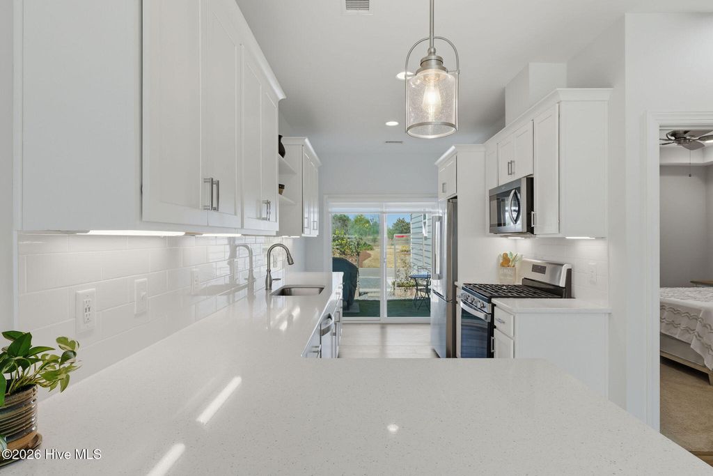 Discover coastal living at its finest in this immaculate townhome located in the highly sought-after Riverlights Community. Flooded with natural light and meticulously maintained, this turnkey property perfectly blends modern design with everyday comfort. Step inside to a breathtaking open-concept main living area featuring stunning two-story vaulted ceilings, luxury vinyl plank flooring, and thoughtful details throughout. The spacious living room flows into a chef-inspired kitchen boasting crisp white shaker cabinetry, refrigerator surround, sleek white quartz countertops, a classic subway tile backsplash, stainless steel appliances, and a gas range. Retreat to the elegant primary suite, highlighted by a beautiful tray ceiling and a well-appointed en-suite bathroom featuring a dual-sink vanity, glass-enclosed walk-in shower with herringbone tile accent, and a built-in niche. Upstairs, you will find a versatile loft space with white railing overlooking the main living area--ideal for a reading nook or home office. Two additional bright, generously sized bedrooms with plush carpeting and a pristine guest bathroom provide plenty of space for visitors. Outside, enjoy your private, low-maintenance courtyard with no homes behind you and a detached garage. Enjoy low-maintenance living at its best; the HOA covers the exterior, landscaping, irrigation, building maintenance, pressure washing, pest control, a termite bond, and a master insurance policy. Riverlights offers a unique blend of natural beauty and vibrant amenities, with easy access to a 38-acre lake and scenic 3.4-mile trail. The mixed-use district features restaurants, a bike shop, and a nail salon. Community amenities include a clubhouse, billiards, two fitness centers, two pools, dog park, playgrounds, bocce, and pickleball! Minimum 6-month lease term per HOA. This home is a perfect blend of luxury and convenience in a premier location.