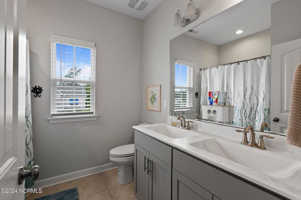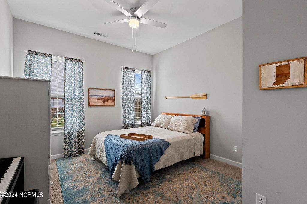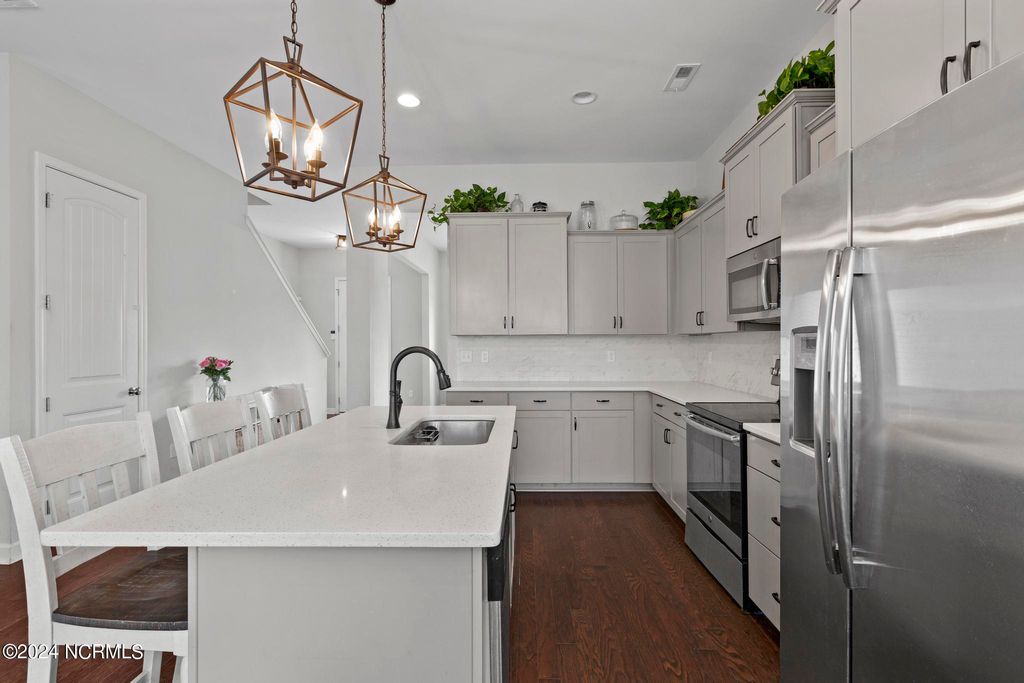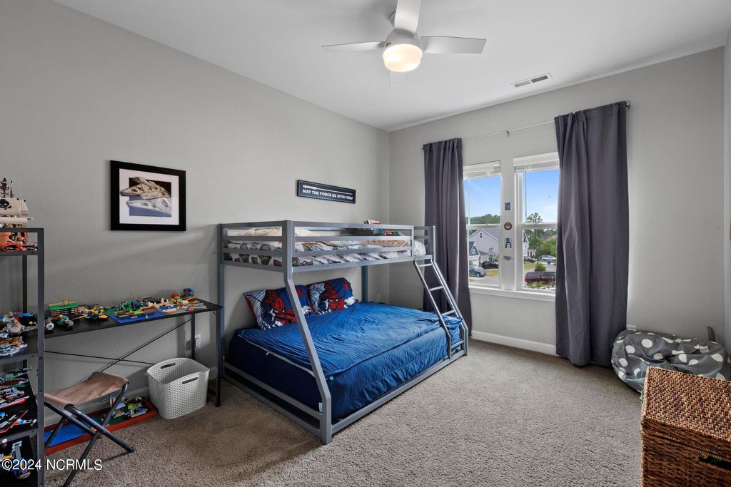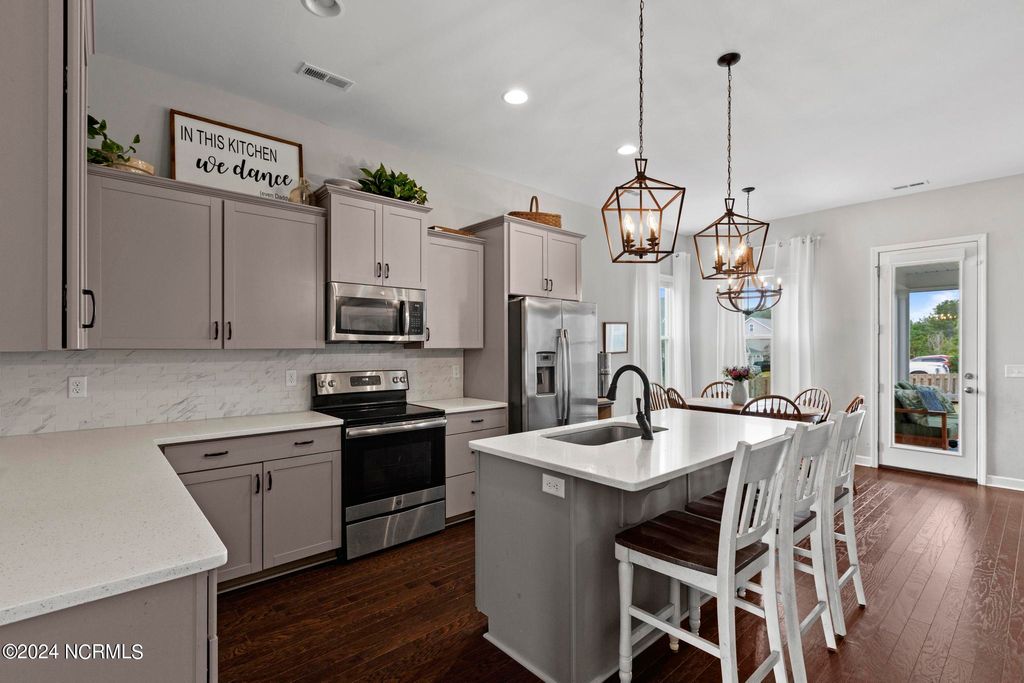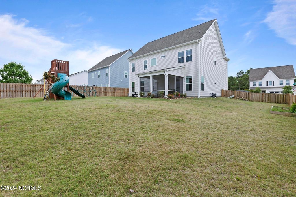 Welcome to your dream home at The Arbors! The Morgan floor plan is a spacious 5-bedroom, 3-bathroom house and is perfect for families or anyone who loves to entertain. The spacious living room and dining area are flooded with natural light and offer a cozy atmosphere for relaxing by the fireplace or enjoying a meal with loved ones. The kitchen is beautifully designed with iced edge quartz countertops, updated light fixtures, stainless steel appliances, and a large island with breakfast bar. With a spacious kitchen island, you'll have plenty of room to cook and entertain guests. For those looking to entertain overnight guests, this house has a downstairs guest suite with full bath. At the top of the stairs, you will find a primary bedroom offering a large en-suite bathroom with soaking tub and tiled shower with glass door. Three additional upstairs bedrooms as well as a recreation room make this the perfect home for a large family! The backyard welcomes you with a fenced in yard and screened back porch. The porch is the perfect place to relax and enjoy the beautiful weather without any pesky insects bothering you. The Arbors has many amenities including a community dock, pool, lake, and outdoor picnic/grilling area. Located less than 5 miles from the beach and within walking distance of the grocery store. This home is located in the highly sought after Pender County School District, just north of Wilmington and south of Jacksonville.