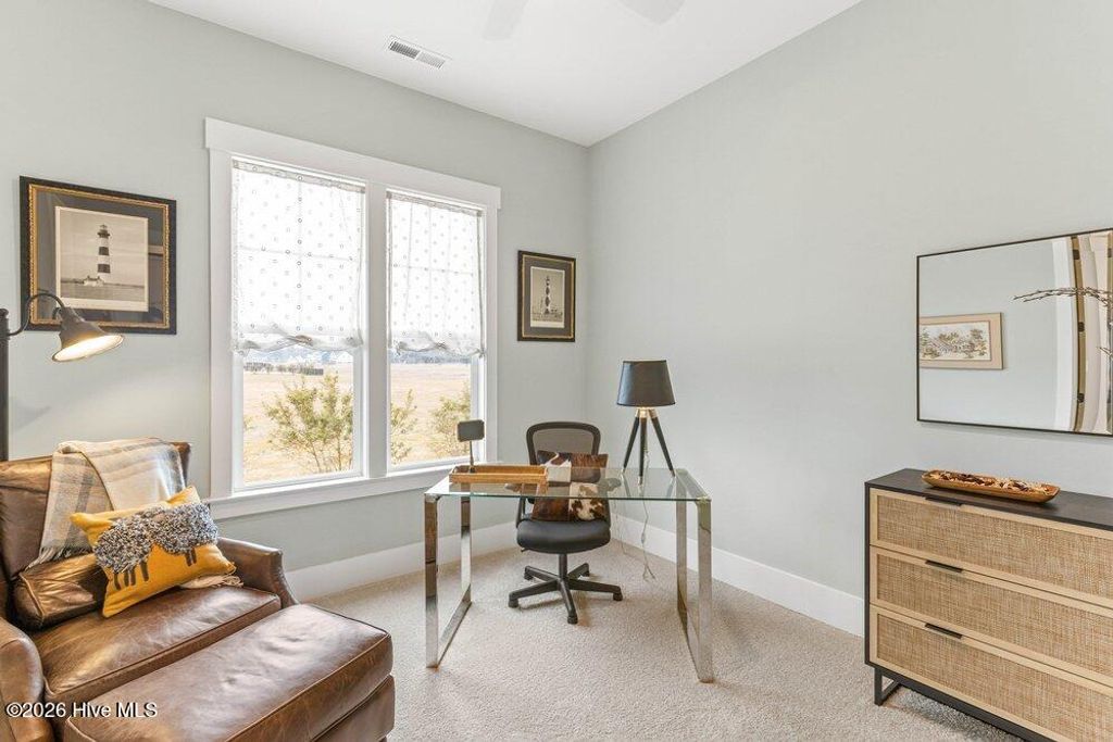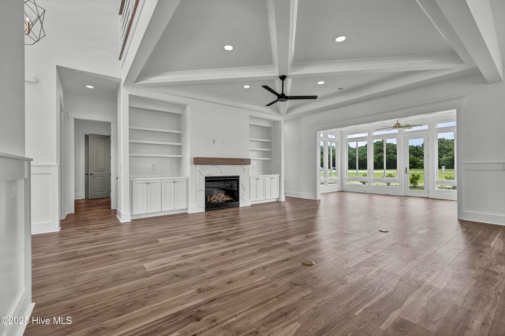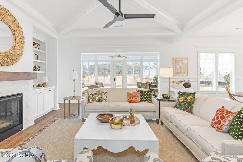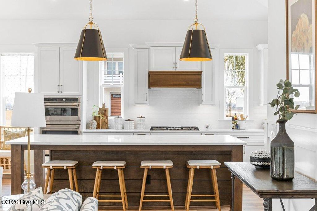 No surprise this homeowner has chosen this home in sought after East Wynd with all that it has to offer. It's natural beauty speaks for itself, and what a perfect backdrop for this Harbour Town III design. The efficiency the Harbour Town offers is not only in efficiency, but also in useability. This home has never been lived in. Hagood Homes has leased back this home as a Model Home till now. This home offers 3 bedroom suites down and maximizes privacy for the owner's suite located in the back of the home. As with many of our homes, the kitchen is at the heart of the home. So many of our homebuyers are excited as the Kitchen is on an exterior wall with an abundance of windows allowing even more natural lighting and the ability to enjoy the outdoors while making dinner! This kitchen offers a generous 9'6'' island with an 18'' overhang on the backside and a 12'' overhang on the dining side. The cabinets offer a wood box, soft-close, dovetail and full extension drawers with under-cabinet LED lighting, and tile backsplash. Offering a Wall/microwave combo and a natural gas cooktop. Attention to details, even the walk-in pantry has carpenter built on-site shelving. Our appliance package included is the GE Café Series. You will quickly realize this is what you have been looking for! Relax in front of the fireplace or share your days memories sitting around this impressive kitchen. This four-seasoned room is known for it's WOW factor. Beautiful, inviting and a great place to start your day with your morning coffee or telling stories with guests after dinner. This home offers what so many of today's buyers are looking for. The minute you walk through the front door you will see the 10-foot ceilings detailed with beams in the Family room. As well as the dining and kitchen areas, plus the 8 foot tall doors on the main living area. This coastal trim package, which includes wainscoting detail, 7'' base trim, craftsman window and doors, surround with cove molding and pediments in focal-point areas. The Owner's suite has a bay window separated by double stud pockets for a real custom trim appeal, in addition to the structural support, the look is beautiful! This Primary suite offers zero-entry showers, lit mirrors and oversized closet with a custom shelving ensemble- the list goes on and on! The secondary suites also offer the abundance of 6ft windows as the rest of the home. The bathrooms in this home offer a tiled tub combo for your secondary bedrooms downstairs, and a tiled shower upstairs. The staircase leads you to the additional lounge, and 4th suite. One of the highlighted features this home offers is a great geataway with visitors enjoying the evening breeze from this large covered porch with a straight shot view of the ICWW! This is when you are going to pinch yourself! An exciting moment for all when you see our spray foam insulation and amazed how comfortable our storage areas are, always! You will love how picturesque this neighborhood is. Known for it's natural feel, and generous size homesites. Nestled between Historic Wilmington and Jacksonville, and a stones throw to Topsail Island shop and enjoy the array of shops, restaurants and things to do! Call today so I can boast about all the attributes we offer, and why this area is sought after in Southeastern North Carolina!