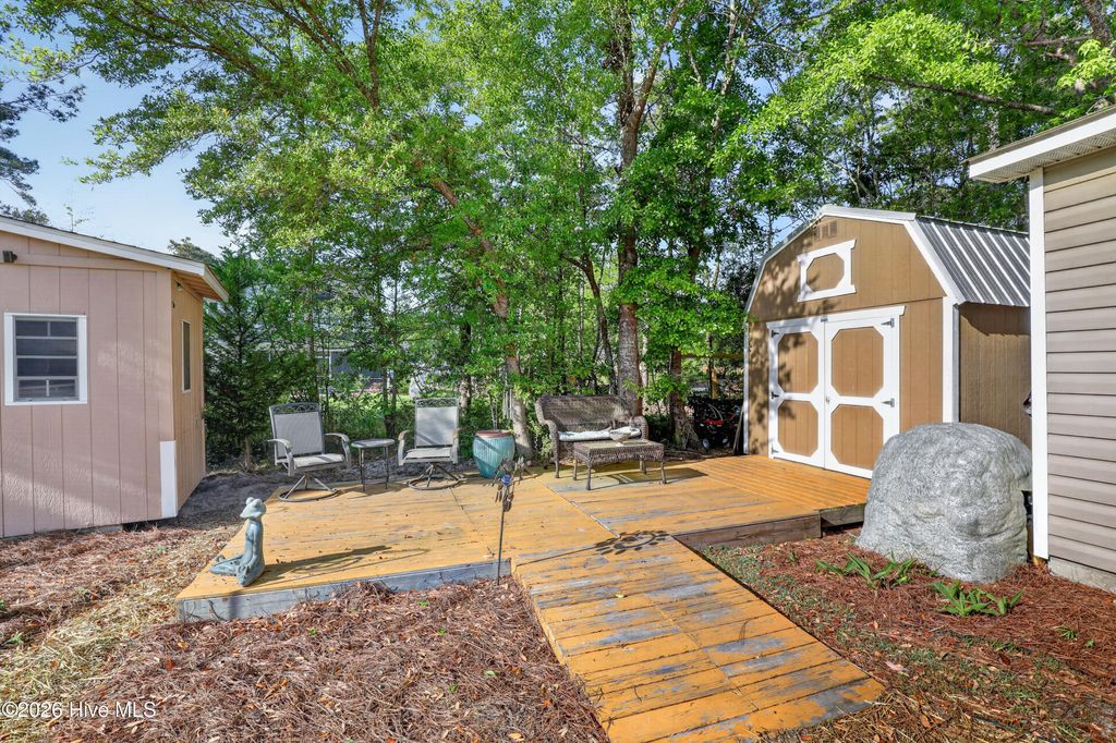 THIS AMAZING HOME HAS SO MUCH TO OFFER!! Quietly tucked away in desirable Topsail Lakes Neighborhood with a pond view. Spacious living in this 4 bedroom 2 full bathroom house that boasts of a split floor plan. Unique floorplan also provides a living room and a family or flex room. Kitchen features updated cabinets and granite counters. Enter the backyard onto a deck built in 2021 with handicap ramp leading to a homesteaders dream! Property includes a stick built double carport with wired storage/workshop, 2 wired sheds and a greenhouse! Additional highlights feature a water softner, under sink water filtration and sulfar tank. Conveniently close to shops, restaurants and only 14 miles to Topsail Beach!