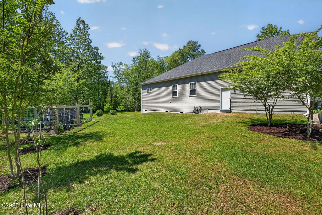 Meticulously maintained 3-bedroom, 2-bath ranch-style home located at 99 Thomas Lane in desirable Hampstead, just minutes from Wilmington and a short drive to Topsail Island beaches. Situated in the highly sought-after Topsail School District, this home offers the perfect blend of coastal living and everyday convenience. Set on a spacious lot surrounded by mature trees and beautiful flowering landscaping, the property provides both privacy and natural charm. An additional pad offers space for boat or RV parking--ideal for embracing the coastal lifestyle. Built with quality in mind, the home features 2x6 exterior walls with R-19 insulation for enhanced efficiency and durability. The inviting floor plan showcases a well-appointed kitchen with granite countertops, a center island, stainless steel appliances, and ample cabinetry--perfect for both daily living and entertaining. A flexible formal dining room offers the option for a home office or additional living space. Hardwood flooring runs throughout the main living areas, adding warmth and timeless appeal. The home also features vaulted ceilings that enhance the sense of space and light. Relax on the screened porch overlooking the serene backyard, with a convenient storage area underneath--perfect for tools, lawn equipment, or beach gear. Move-in ready and thoughtfully cared for, this home offers comfort, versatility, and an outstanding location close to the coast and Wilmington.