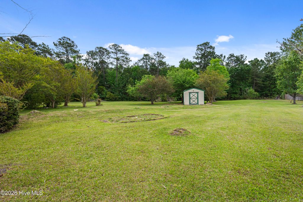 Welcome to this 3 bedroom, 2 bathroom home in Aberdeen Acres, sitting on 1.48 acres of beautifully landscaped property. When you enter the home you're greeted by a large living room with laminate flooring. That low maintenance flooring continues into the dining area and the recently updated kitchen. The kitchen includes stainless appliances, soft-close cabinets and thoughtful storage features, including pull-out shelving in the pantry cabinet. There's also a center island with bar top, making it great for keeping company while you cook. Beyond the living space you'll find three bedrooms and two full bathrooms. Both spare bedrooms boast walk-in closets. The primary bedroom is sizable and features an en-suite bathroom, with updated shower and double vanity, a corner tub, and a massive walk-in closet, in addition to the closet in the bedroom itself. Outside, you can appreciate the spacious lot from the covered front porch. While the property currently boasts beautiful trees and bushes, there's still plenty of room to make this yard your own. There's a beige and green storage shed that conveys, perfect for storing gardening tools, or outdoor games. In addition to these great features, the home had a new roof and a new HVAC installed in 2024. If you're looking for a property with land and functional living space, while still being conveniently located to all the amenities of Jacksonville, this home is worth a look! Request a tour today!