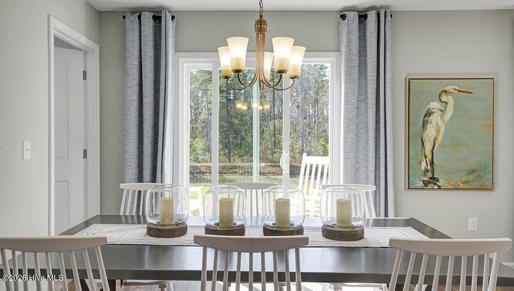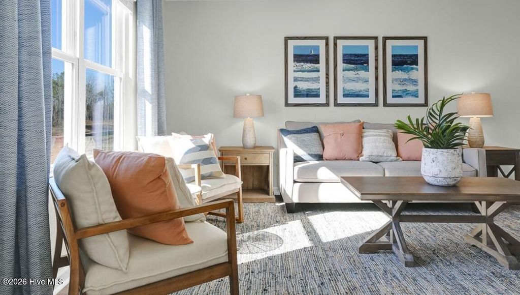 Welcome to The Meadows at Wildwood Village. Residents will enjoy the proximity to downtown Shallotte, which is a charming town known for their locally owned businesses, restaurants, specialty shops, and the Shallotte Riverwalk. The Meadows at Wildwood Village is only a quick drive from Ocean Isle Beach, North Myrtle Beach, Leland, and Wilmington for fun daytrips! This thoughtfully designed one level home has everything you need for your coastal retreat! With an open concept living room, dining room and kitchen, this home is bright, spacious, and designed for entertaining guest or comfortably interacting with family. The kitchen features granite countertops, nice cabinet space, a pantry closet, stainless steel appliances including a refrigerator, and a breakfast bar! Your primary suite awaits off the back of the home with a spacious walk-in closet and master bath with double sinks, and 5' shower. Two secondary bedrooms are at the front of the home providing separation from the primary suite. Blinds will be included throughout the house on all standard windows. Enjoy the coastal air on the back covered porch! 2 car garage with garage door opener. This is America's Smart Home! Each of our homes comes with an industry leading smart home technology package that will allow you to control the thermostat, front door light and lock, and video doorbell from your smartphone. *Photos are of a similar Macon home. Pictures, photographs, colors, features, and sizes are for illustration purposes only and will vary from the homes as built. Home and community information, including pricing, included features, terms, availability and amenities, are subject to change and prior sale at any time without notice or obligation. Square footage dimensions are approximate. Equal housing opportunity builder.