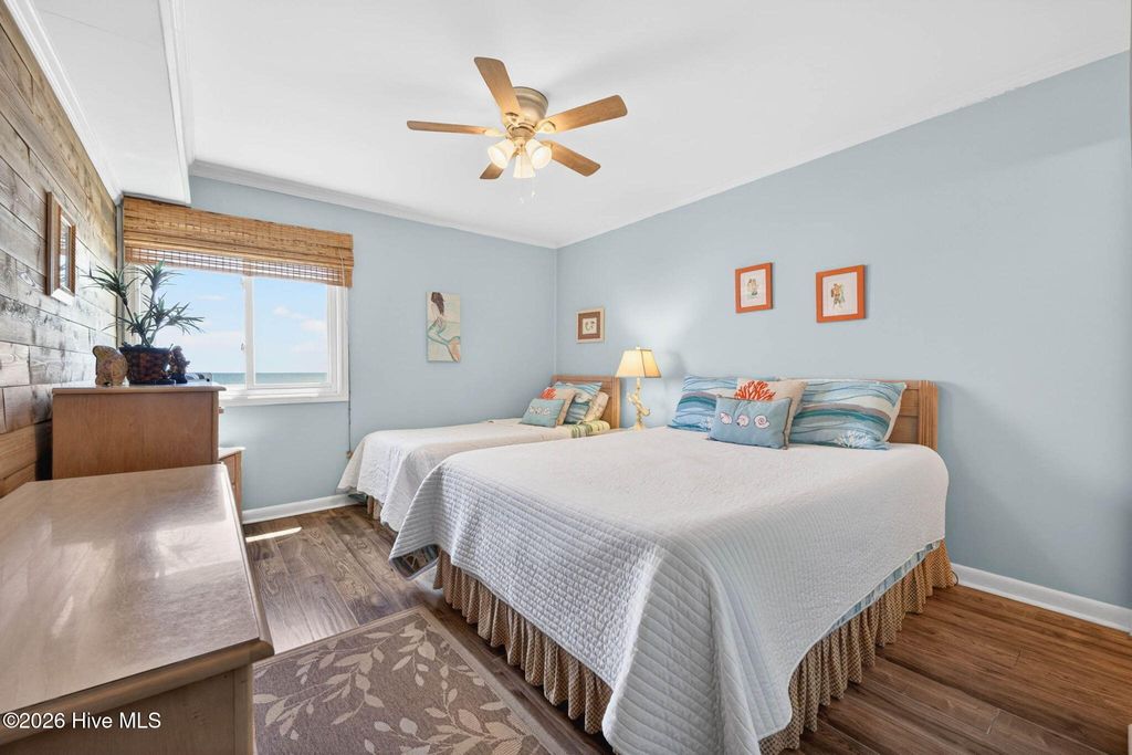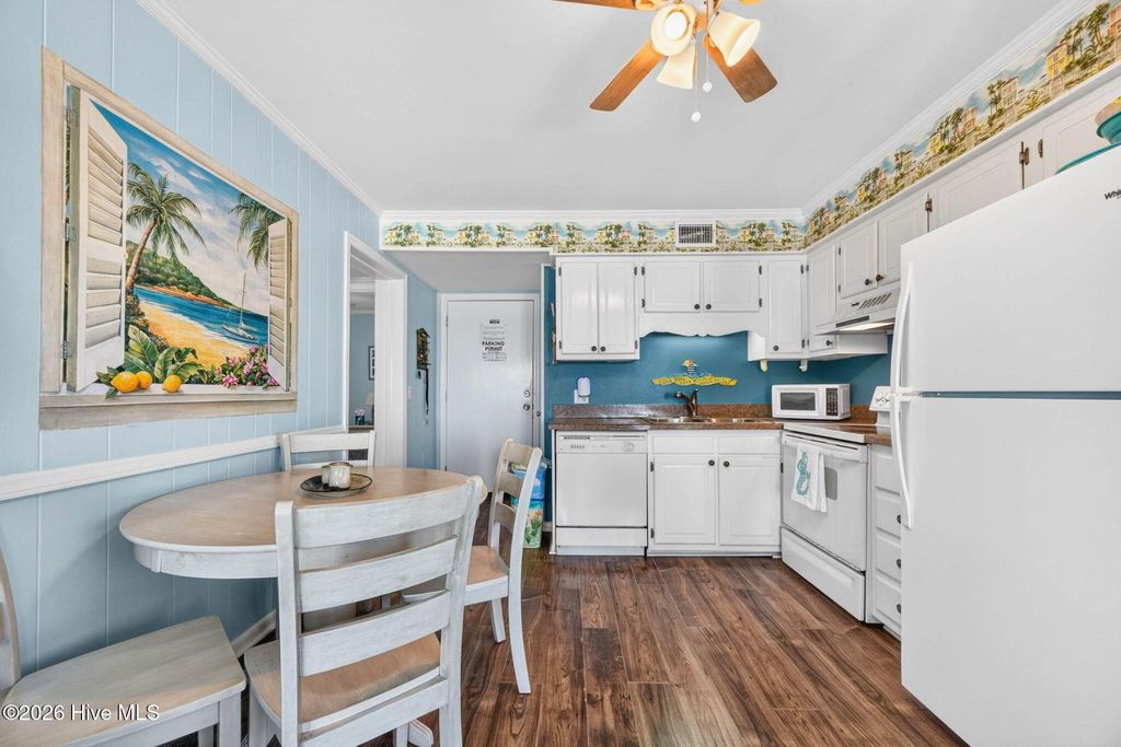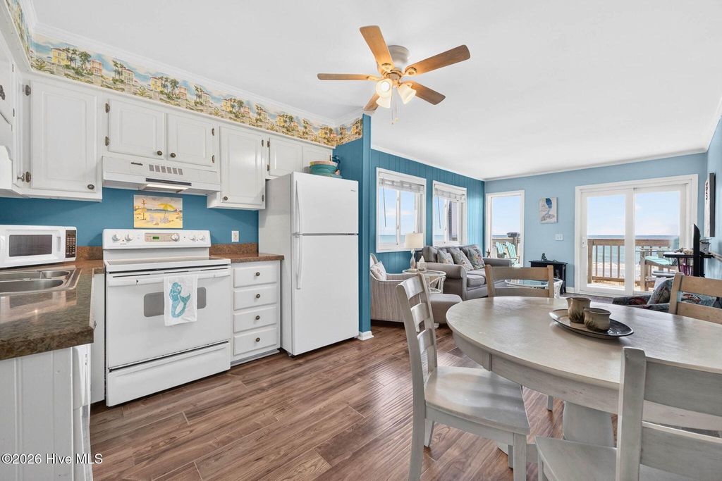 DIRECT OCEANFRONT CORNER DESTINATION! Welcome to the Mermaid condo at A Place at the Beach - your cheerful OCEANFRONT getaway! Beautifully updated, sold fully furnished and equipped, this inviting corner-unit condo offers extra windows creating ocean views from anywhere in the living room, dining and kitchen with abundant natural light. A full 180-degree ocean view from the deck extends west all the way down the coast, past the end of the island and to sunset beach while the eastward view extends all the way past the pier. Enjoy both sunrise and sunset views right from your deck. Once you enter you feel relaxed and calm knowing your views of the sand, ocean and sky will entertain all your senses. Outstanding details include smooth ceilings, stylish luxury wood-like laminate and tile flooring, new HVAC in 2025, a stack washer and dryer, updated bathroom vanities and beachy painted walls and décor adding charm and character. This perfect paradise can be a vacation retreat, an excellent rental income producer, or both. The opportunity is here, and the potential is undeniable. Come visit Ocean Isle Beach to see this gem. Nice restaurants, cute shops, new family park, putt putt and the iconic pier offer something for everyone. Nearby are Sunset Beach, Holden Beach, Myrtle Beach and not far from Wrightsville Beach.