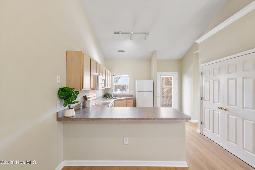 Charming 2-bedroom, 2-bath townhome offering easy, low-maintenance living in a prime central Wilmington location! Features include vaulted ceilings in both the living room and primary bedroom, fresh paint throughout, and brand-new LVP flooring. Enjoy relaxing on the covered front porch or unwind in the private, fenced-in back patio--perfect for outdoor living. Conveniently located near beaches, Riverlights, shopping, dining, and local activities. Move-in ready and full of charm!