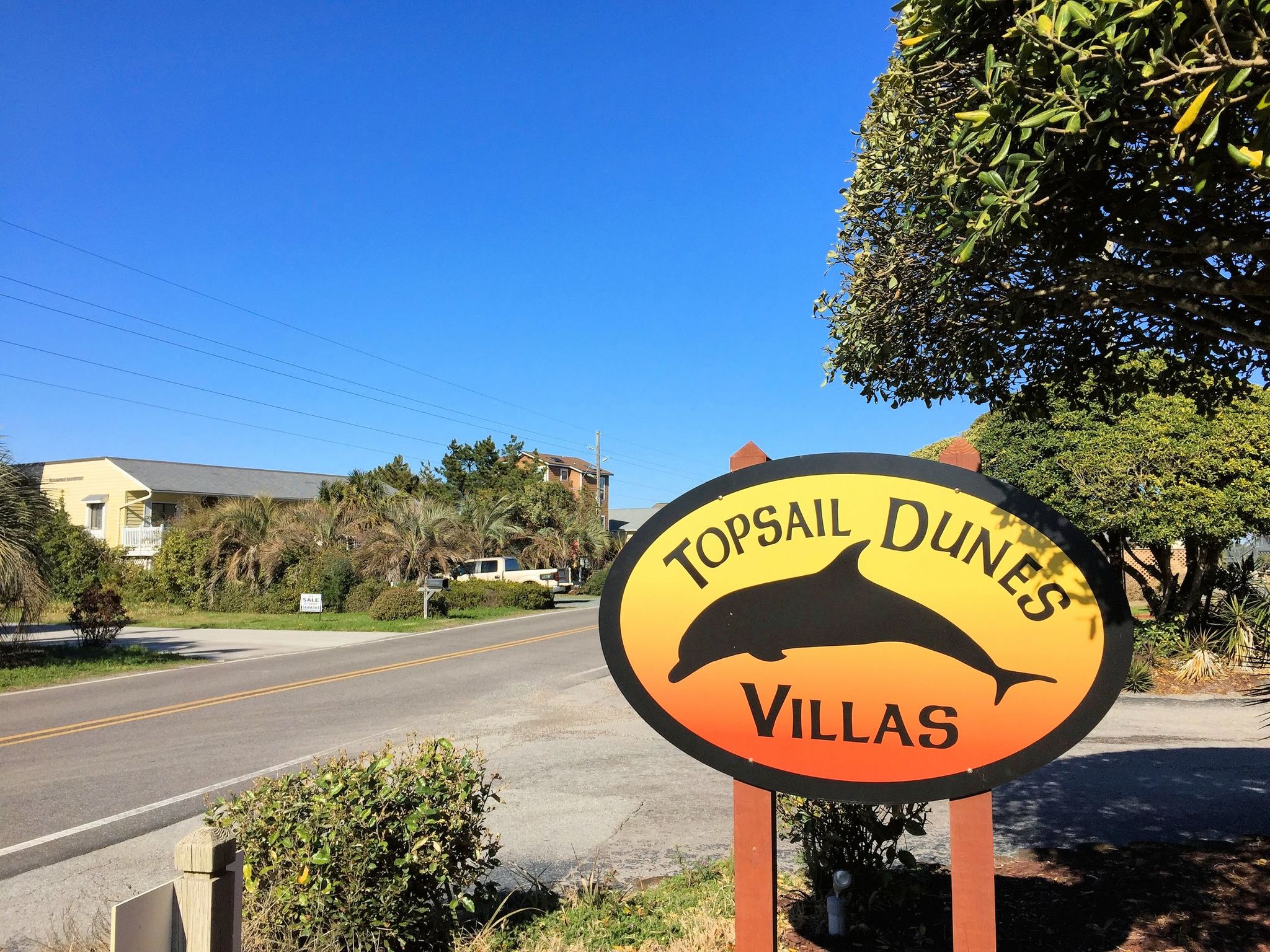 Topsail Dunes is a condominium community located on the oceanfront at North Topsail Beach, North Carolina. Units include 1, 2, and 3-bedroom options and are located in 3 4-story tall buildings, each with their own beach access and parking lot. Between two parking lots are a pair of tennis courts and built along the dunes is a sitting area and large swimming pool with ocean views.