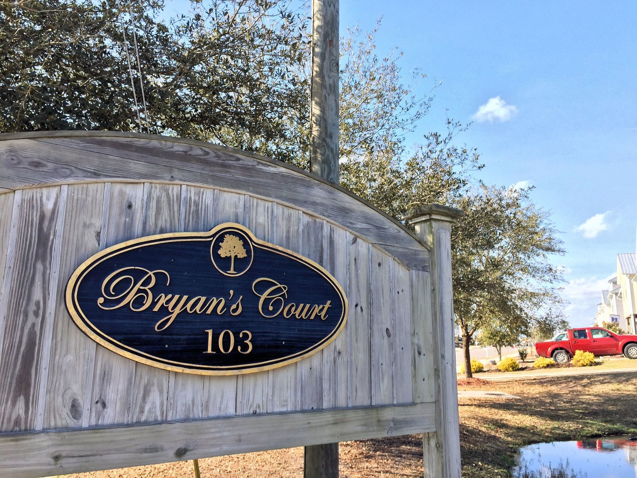 The Bryans Court townhomes, produced by Wellman's Construction, are built on pilings and range from 1,025 square-feet to 1,258 square-feet with 2-3 bedrooms and 2-2.5 baths. Some have carports. Others have enclosed garages, which allows for additional living space. Property features may include: vinyl siding, vinyl windows, metal roof, Bermuda shutters, vinyl or hardwood flooring, carpeting, ceramic tile, formica or granite countertops, shaker style cabinetry, pantry, exterior deck or screened porch, and fenced back yard.