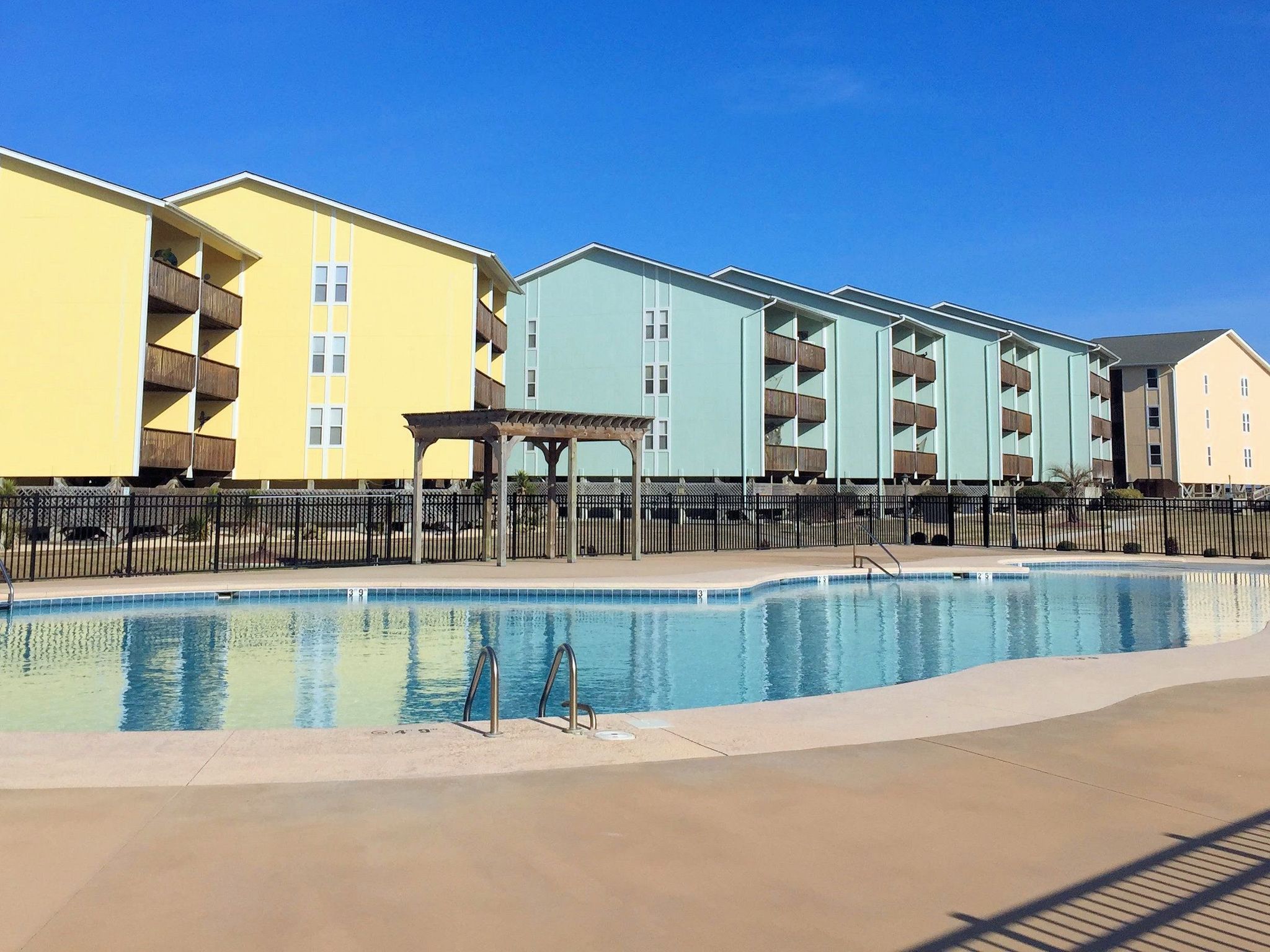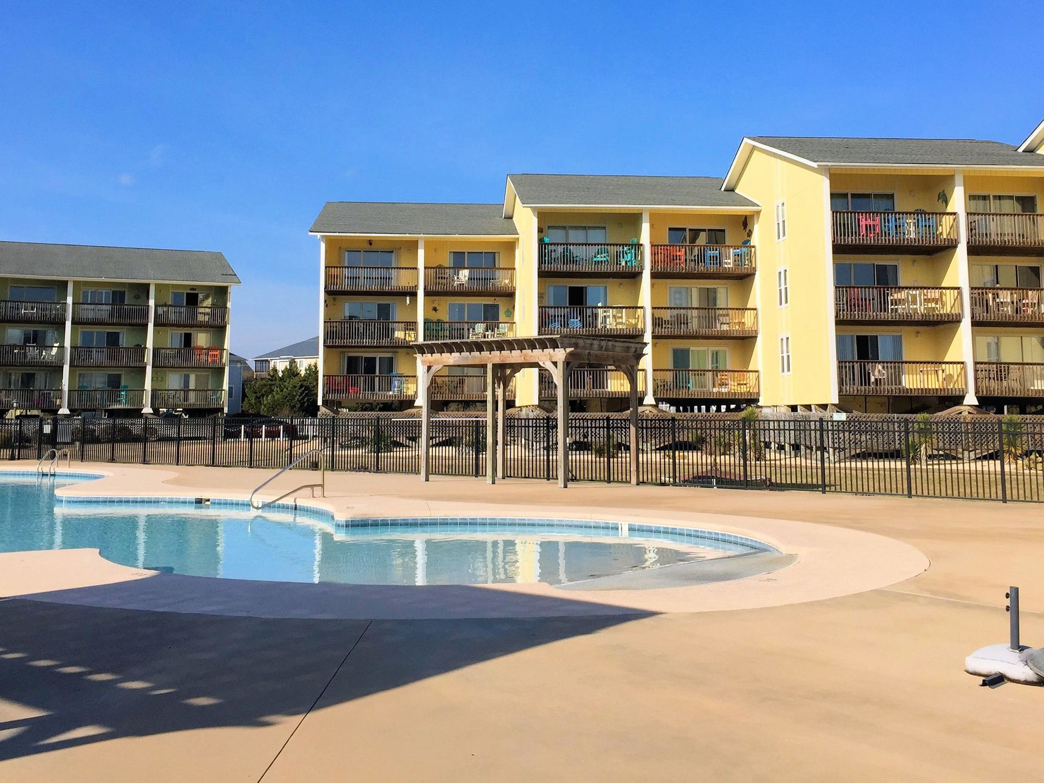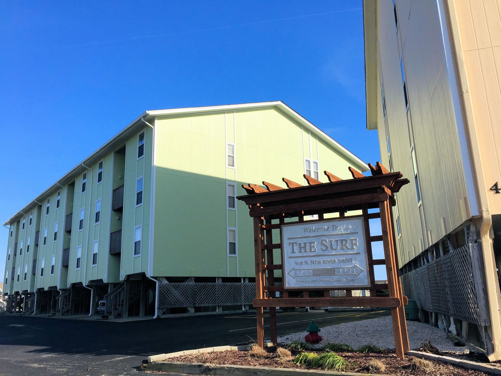 Surf Condominiums (Surf Condos) is a large oceanfront condo complex located off N. New River Drive in Surf City, NC. It's just 4 minutes from the Surf City Pier and surrounding shopping and dining. This complex consists of 8 buildings constructed around a large community area with an in-ground swimming pool and sidewalks. It also has multiple beach accesses, so residents can quickly reach the gorgeous Atlantic Ocean wherever they are in the complex.