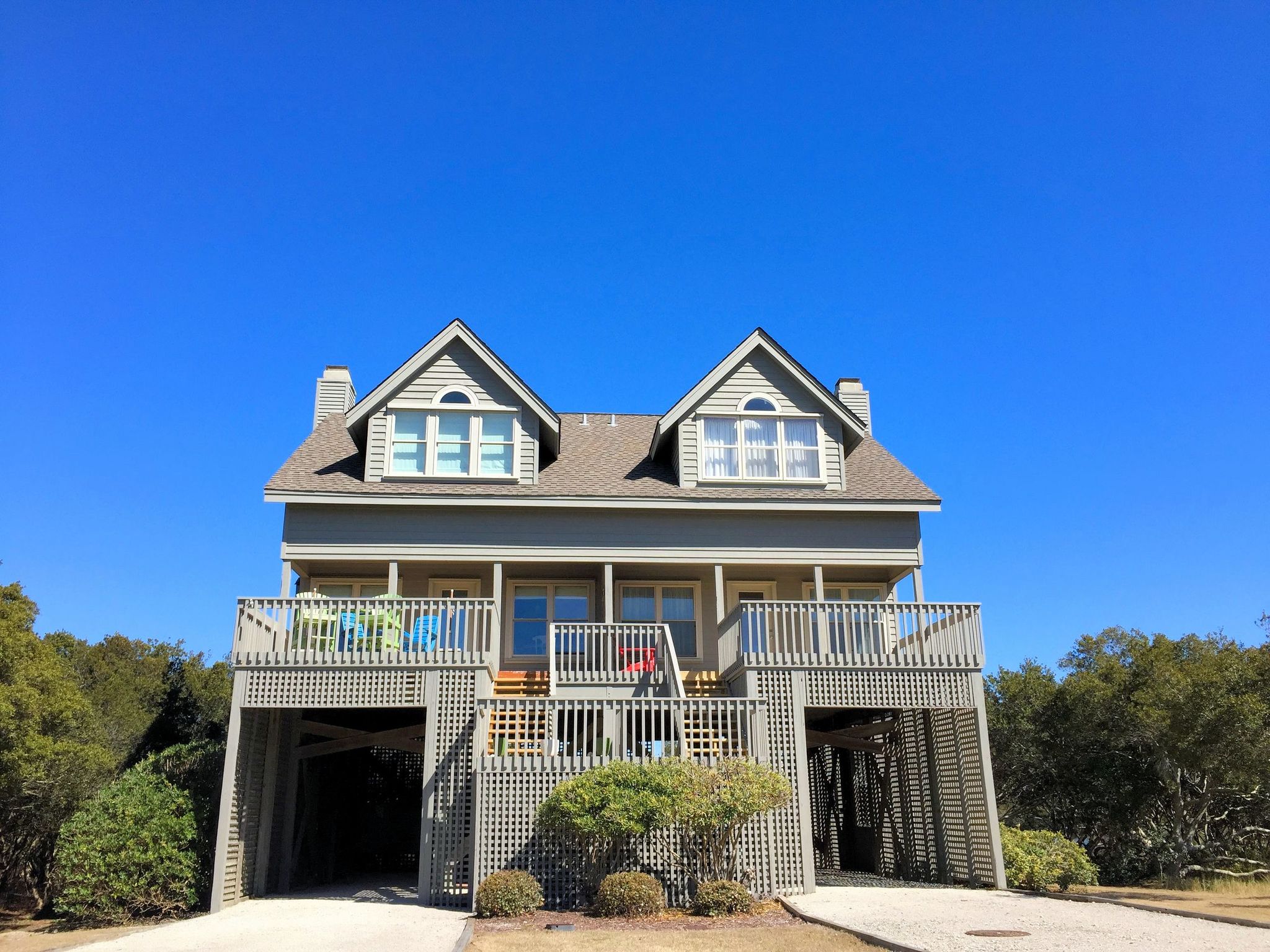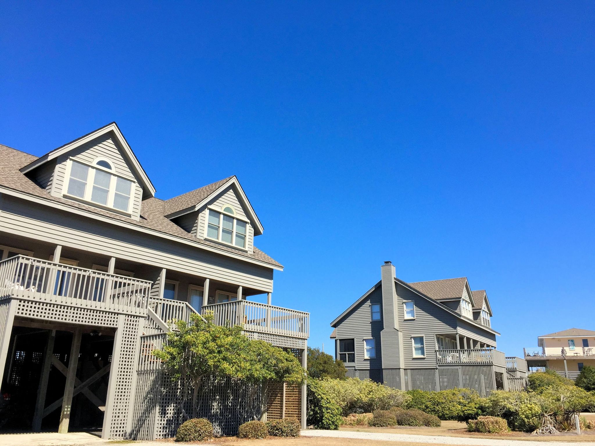 Filled with both townhomes and detached single-family homes, this community was originally developed in the late 1980s and early 1990s. The homes are constructed on pilings with carports and storage on the ground floor. Other features include open living spaces with fireplaces, airy master suites, lofts, screened porches, and exterior decks that maximize the views. All of the properties include deeded beach access and use of the community swimming pool.