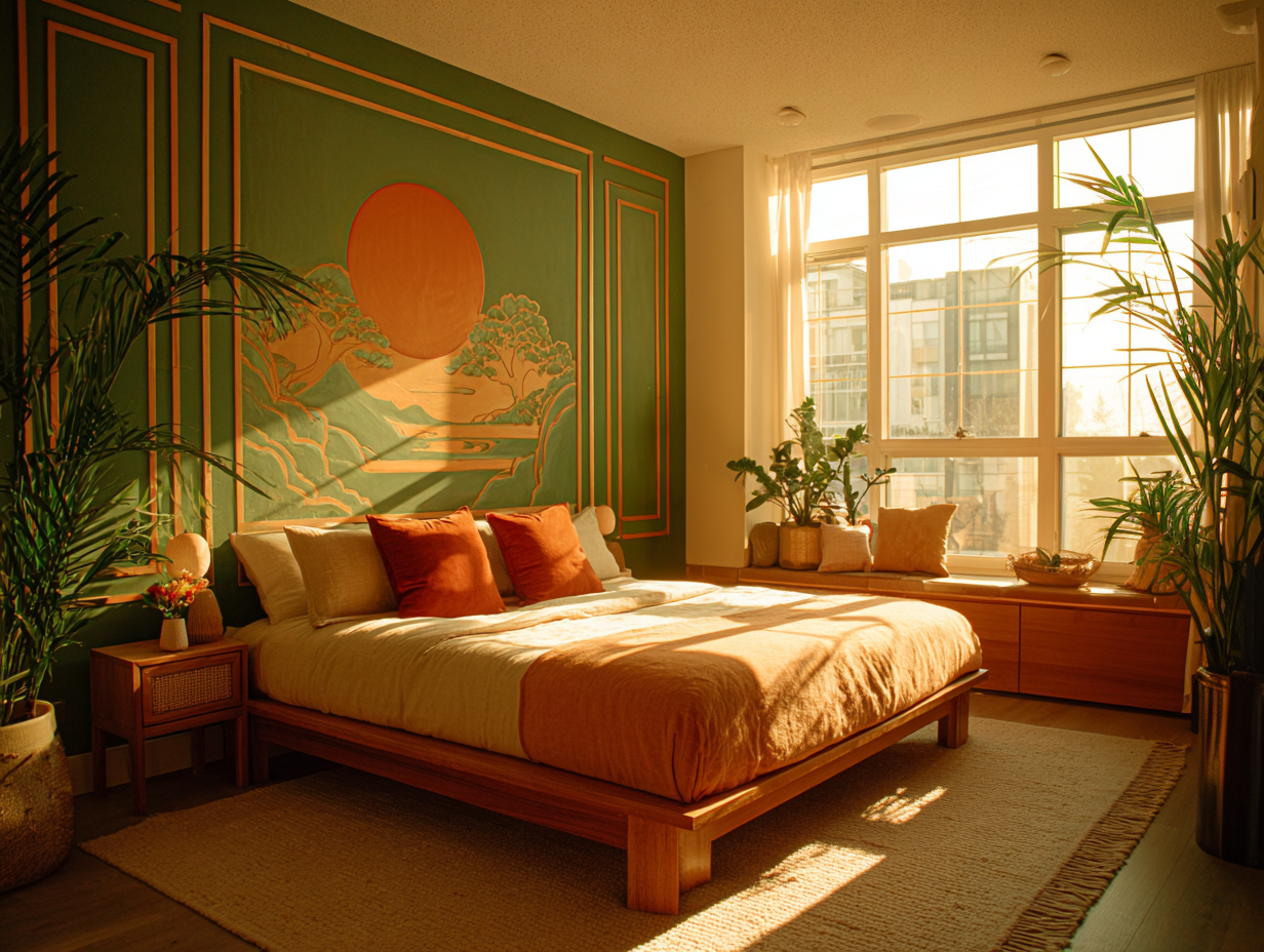 - Start neutral: Use warm whites, soft beiges, clay tones, or muted browns on large surfaces.