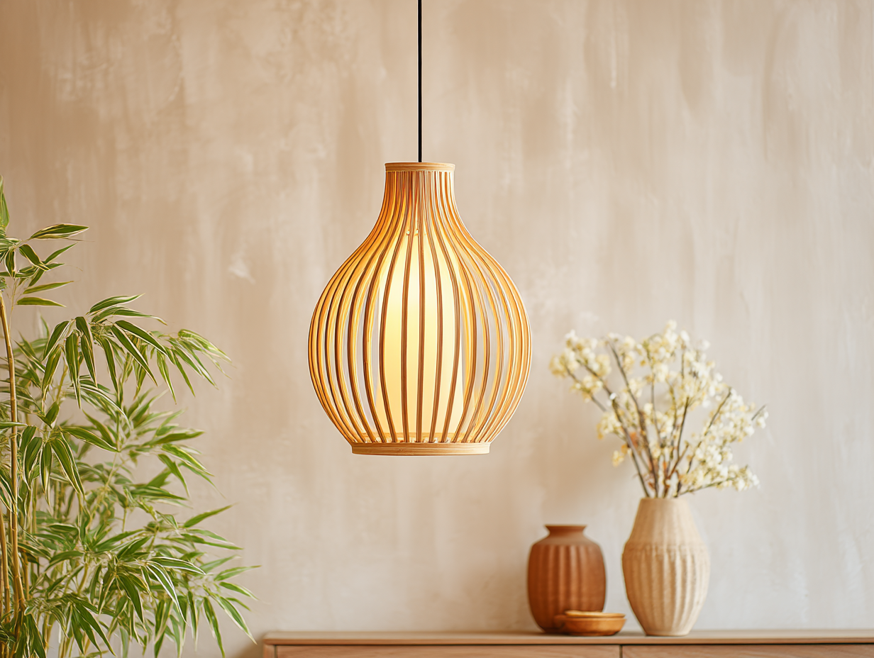 Specific product ideas to search for: “woven pendant light,” “rattan pendant lamp,” “bamboo lantern pendant,” or “textured ceramic table lamp.”