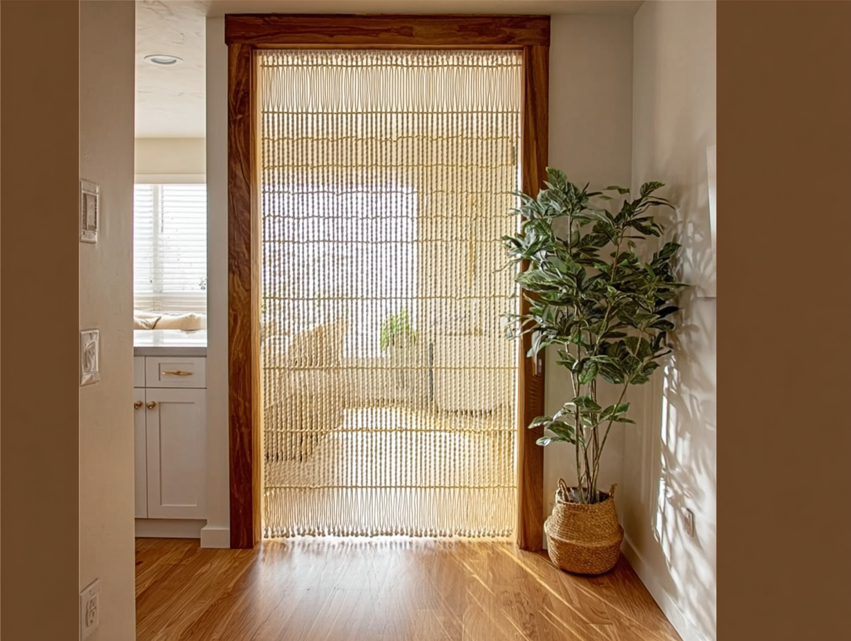 - Doorway accent: Hang a bamboo beaded curtain in a doorway to soften transitions between spaces.