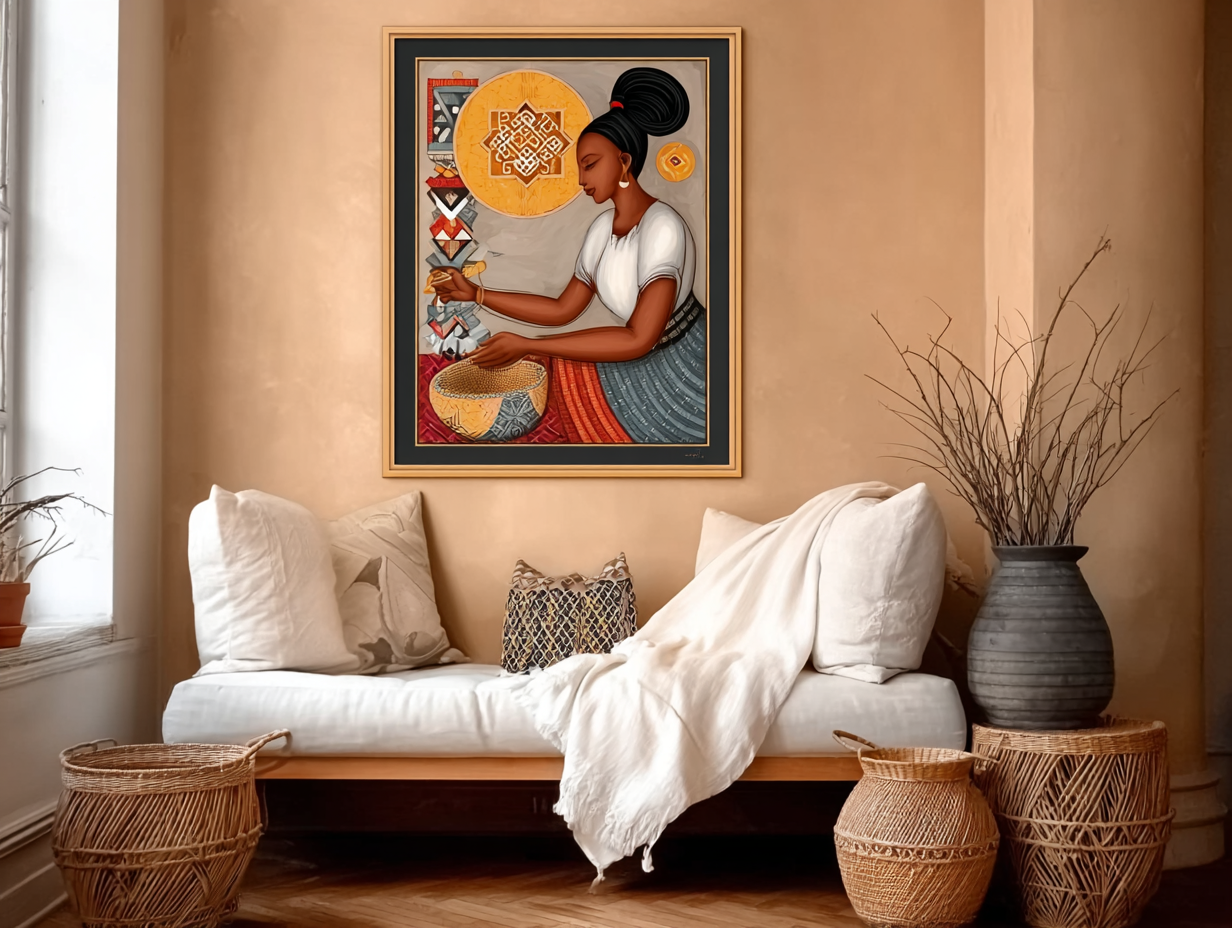 Ethiopian art has a unique place in Afrohemian decor due to its distinct visual language and long artistic history. From traditional religious iconography to vibrant folk art and contemporary paintings, Ethiopian art often features bold colors, stylized figures, and narrative symbolism.