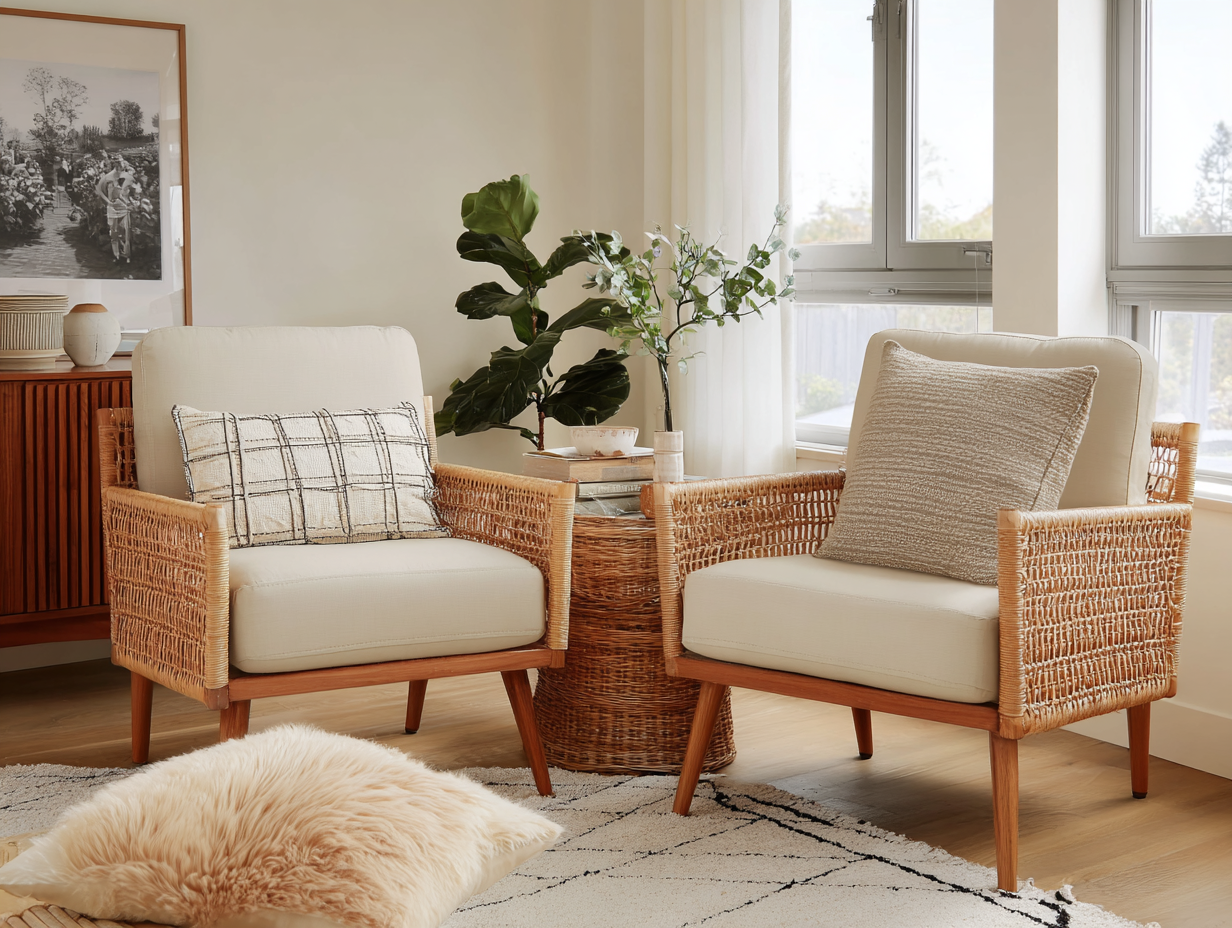 - Living room balance: Use two rattan chairs opposite a sofa to create a conversational layout.