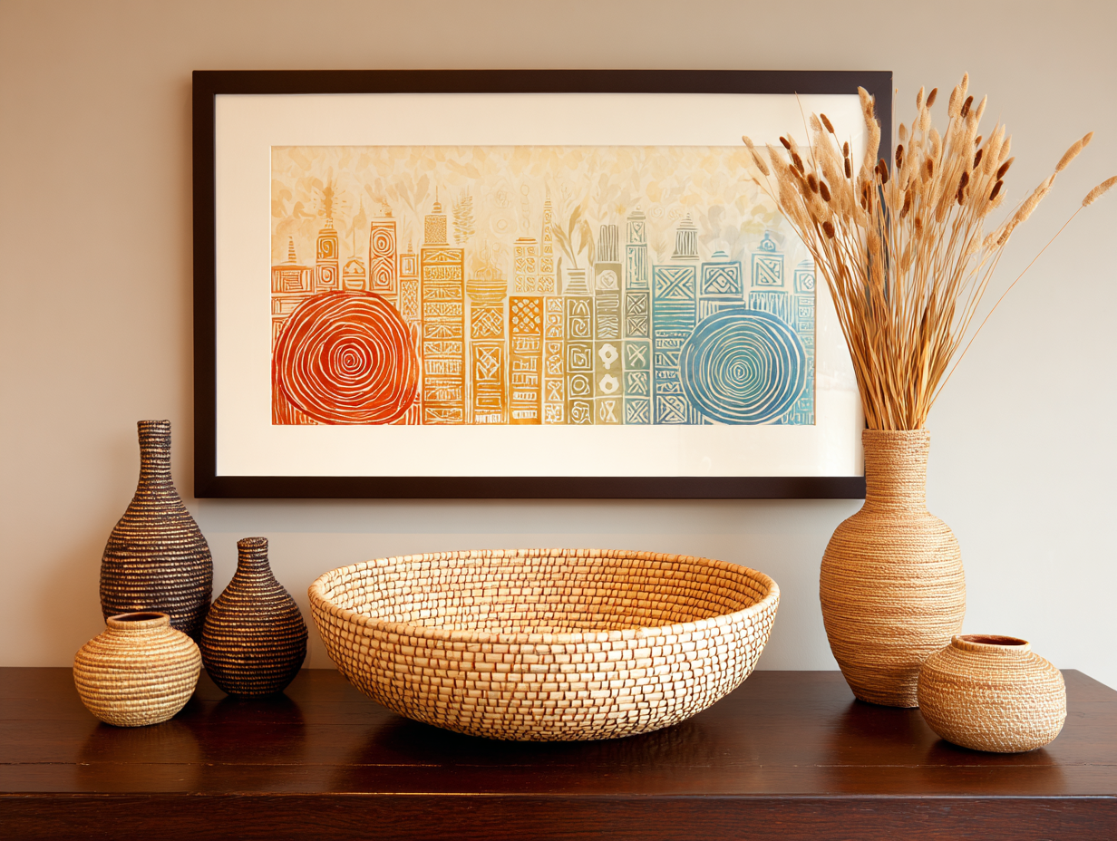 - Gallery wall mix: Combine Ethiopian art with woven baskets, photography, and textile fragments for a layered look.